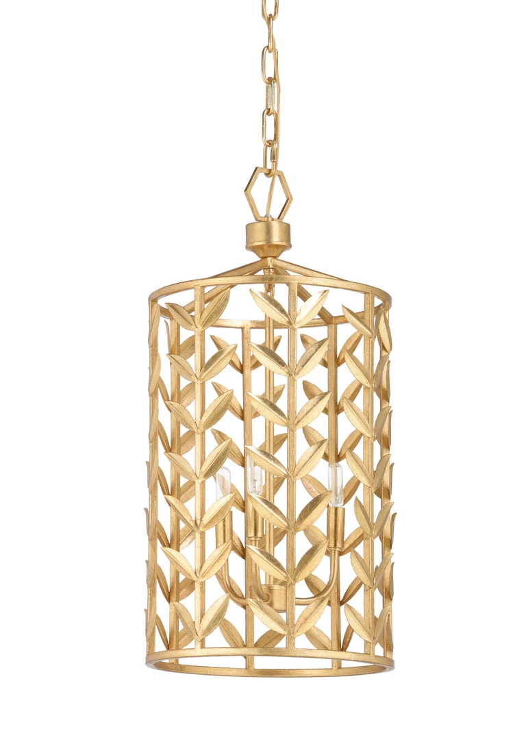 Open Metal Work Lantern Featuring Stem And Leaf Detail In Gold Leaf. Comes With Six Feet Of Chain. Designed By Claire Bell.