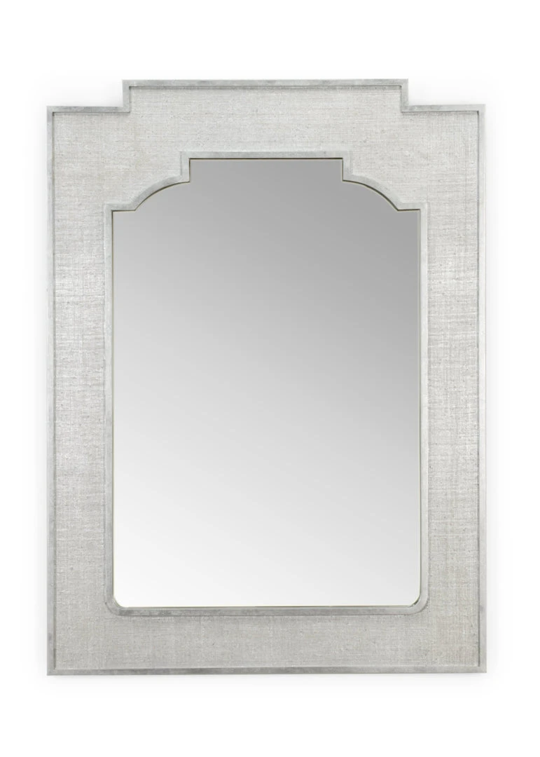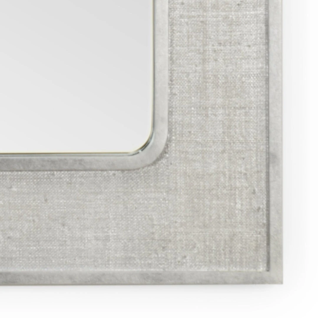 Clear Mirror In Raffia Covered Frame With Wood Trim.