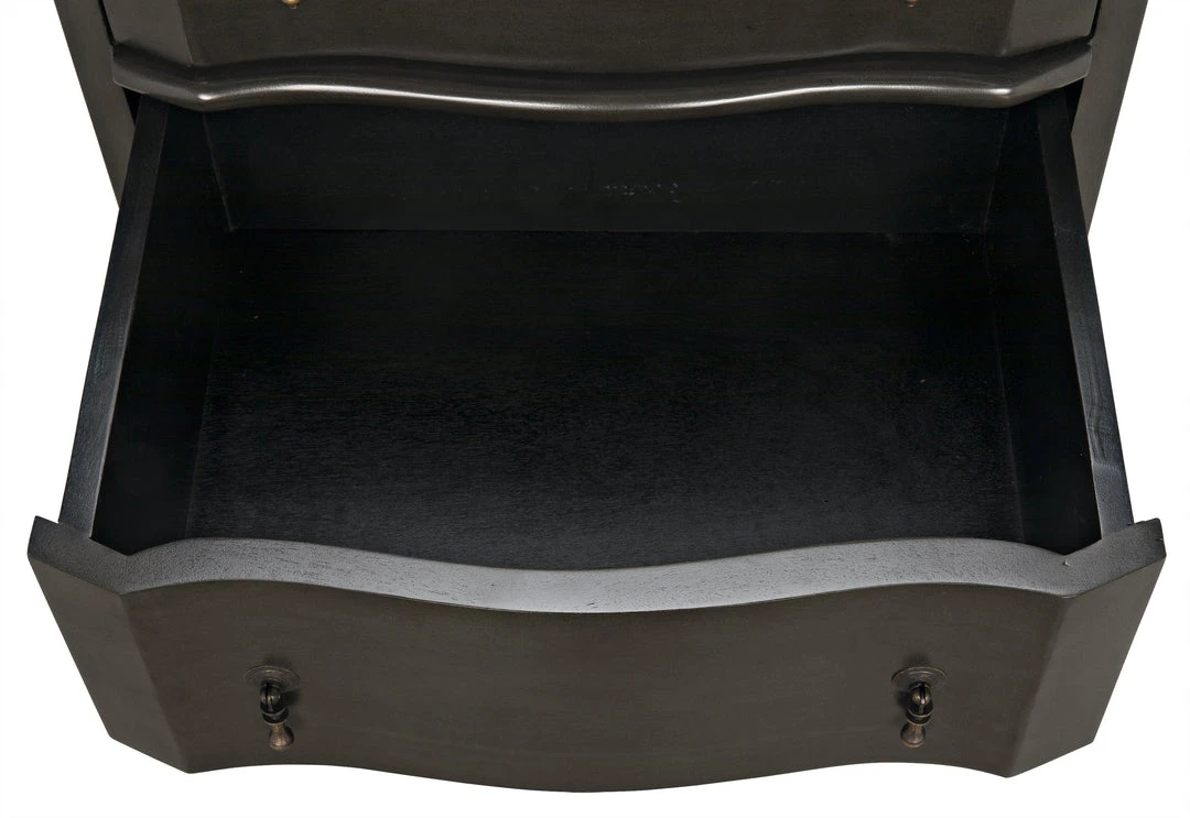 Styles become classics because their look and lines transcend fashion and become, simply, timeless. The Moira nightstand is a true classic. Hand-carved of solid mahogany, with three smoothly gliding drawers, it will be as at home with future generations as it is with yours.