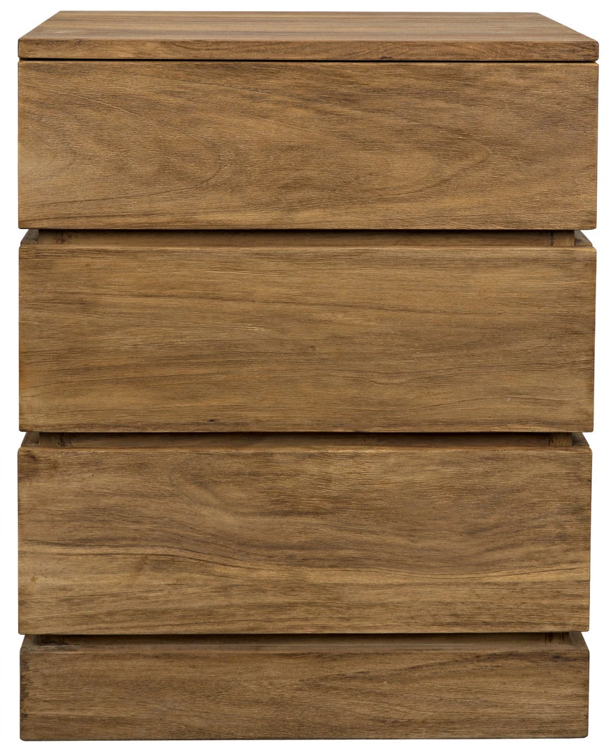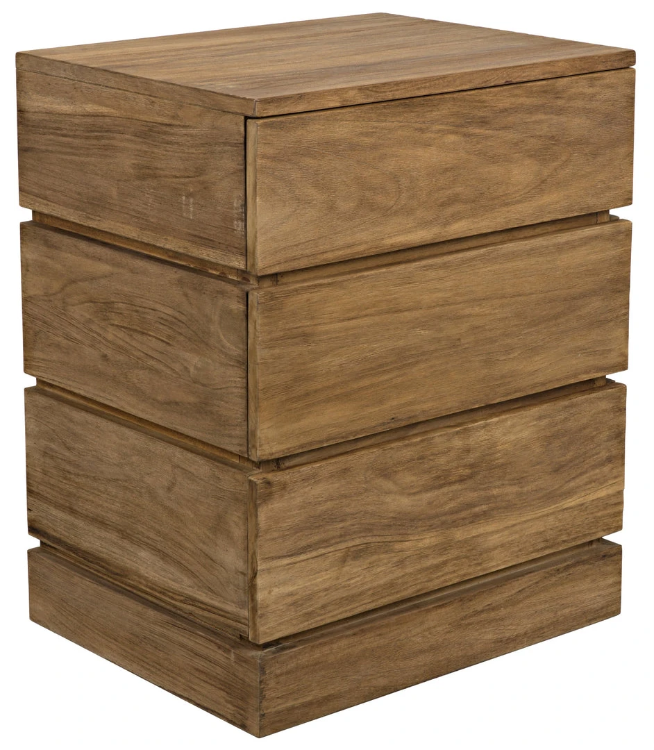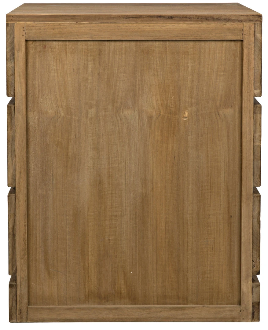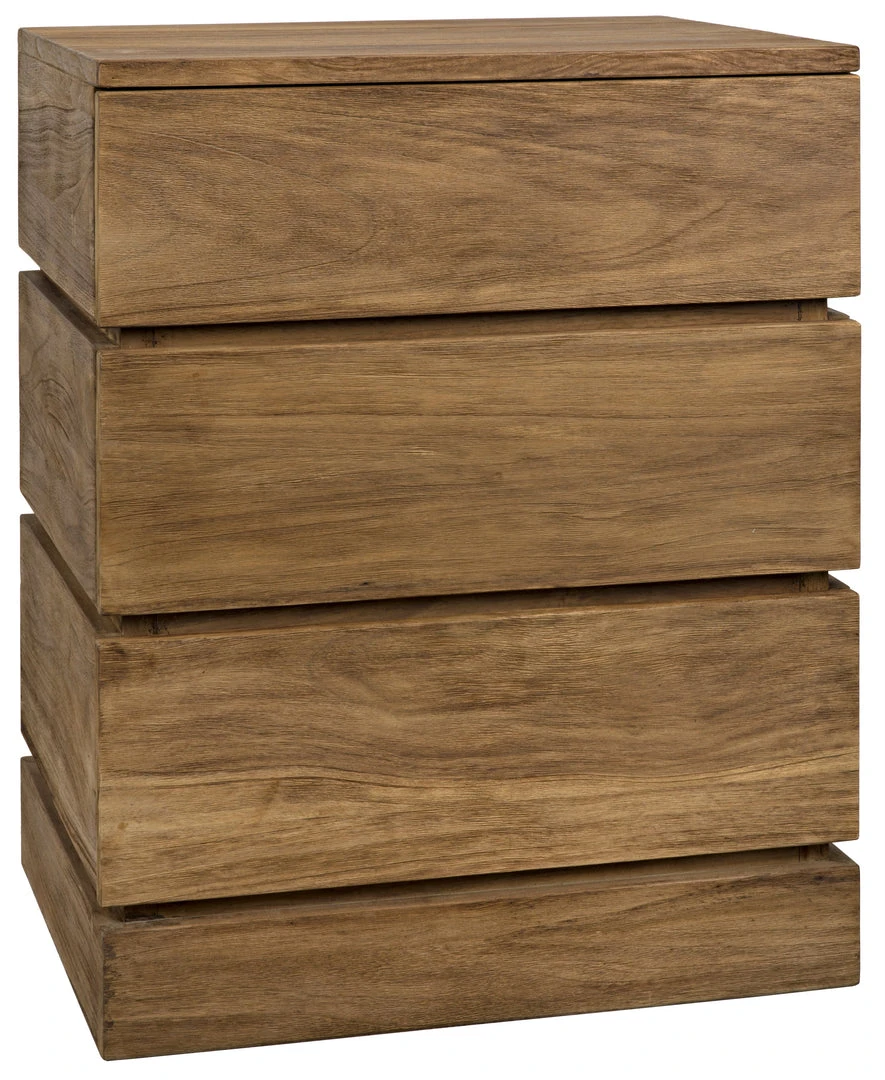Magnificently designed to appear as though it has carved from a solid hunk of teak, this dresserÕs drawers open smoothly with a touch to provide generous storage. Available in a three-drawer dresser or a six-drawer tallboy, each sports a softly distressed natural finish.