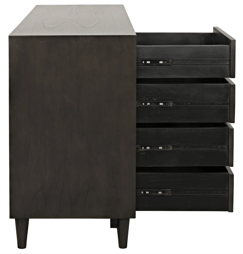 The type of piece certain to become a cherished family heirloom, the Wander Chest is fully finished of solid mahogany and is equally impressive from any angle. As practical as it is handsome, it features eight large drawers, two narrow drawers, and a large central cupboard.
