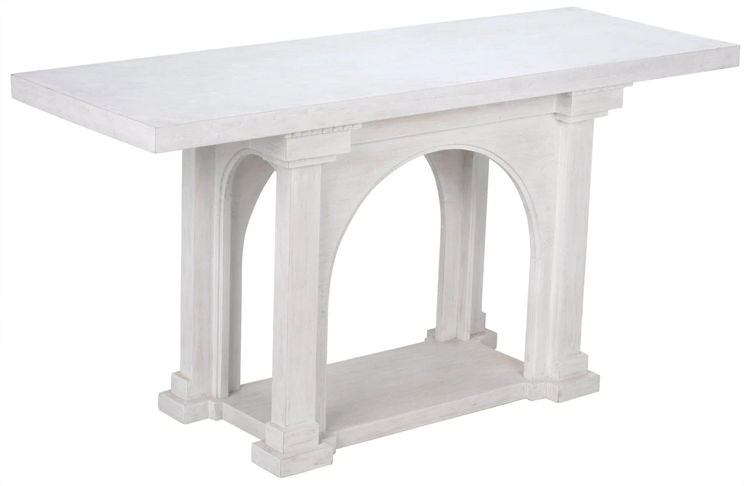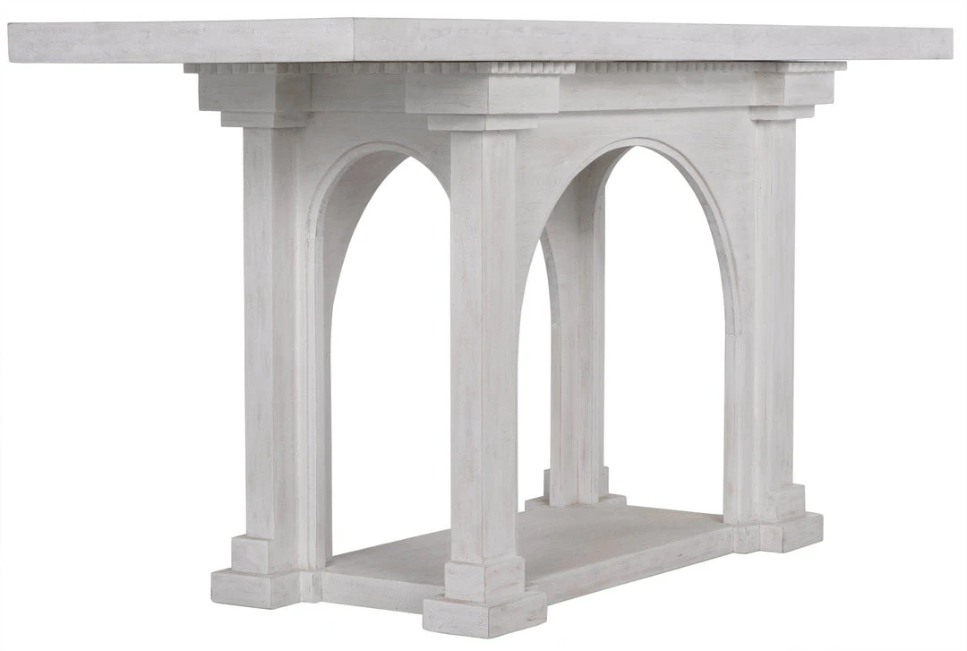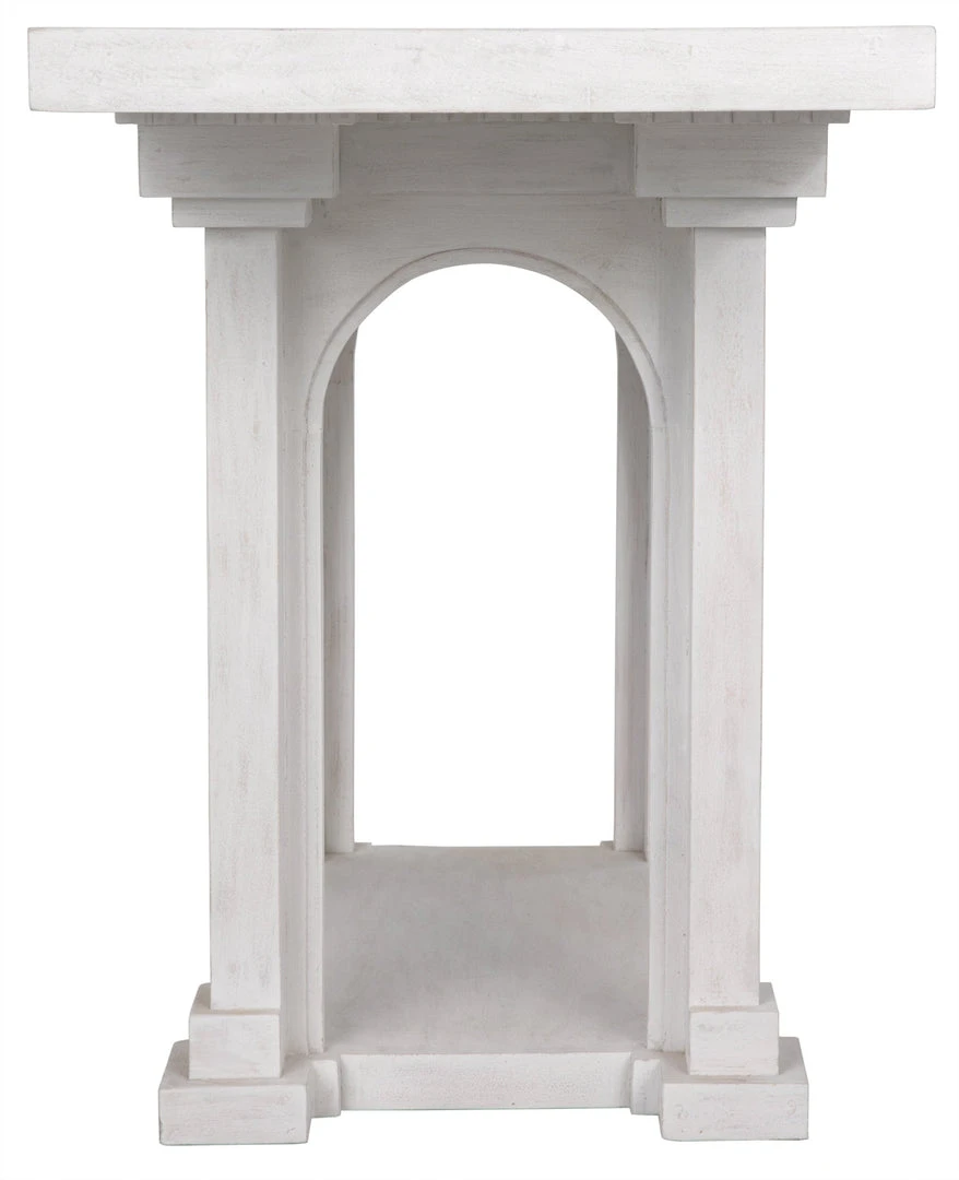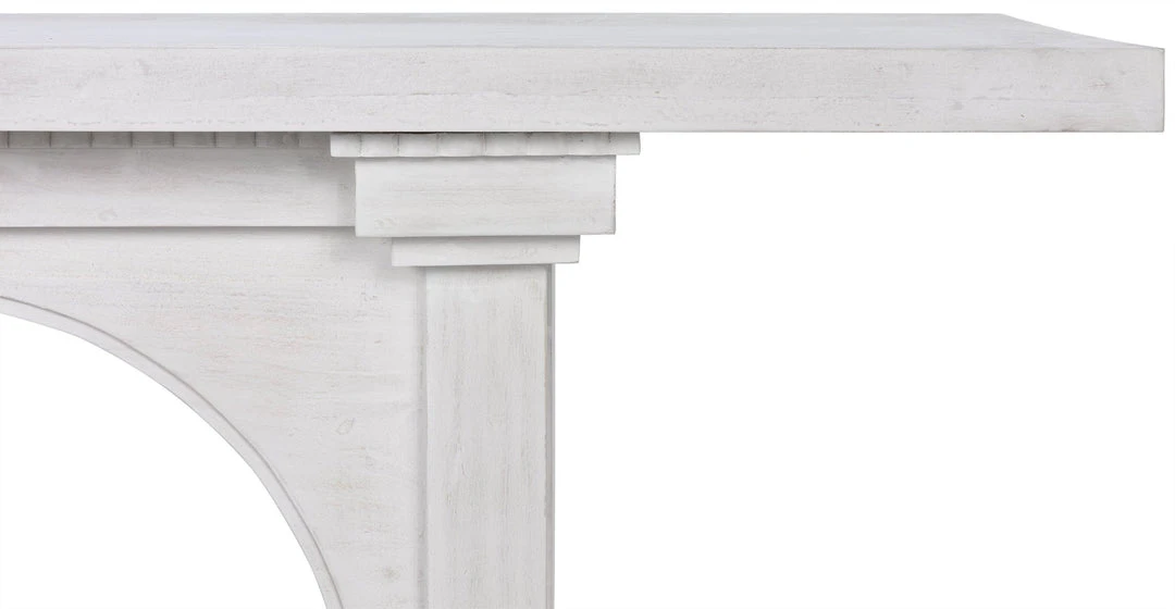 Whitewashed mahogany is manipulated masterfully here, in a classically inspired console from Noir.