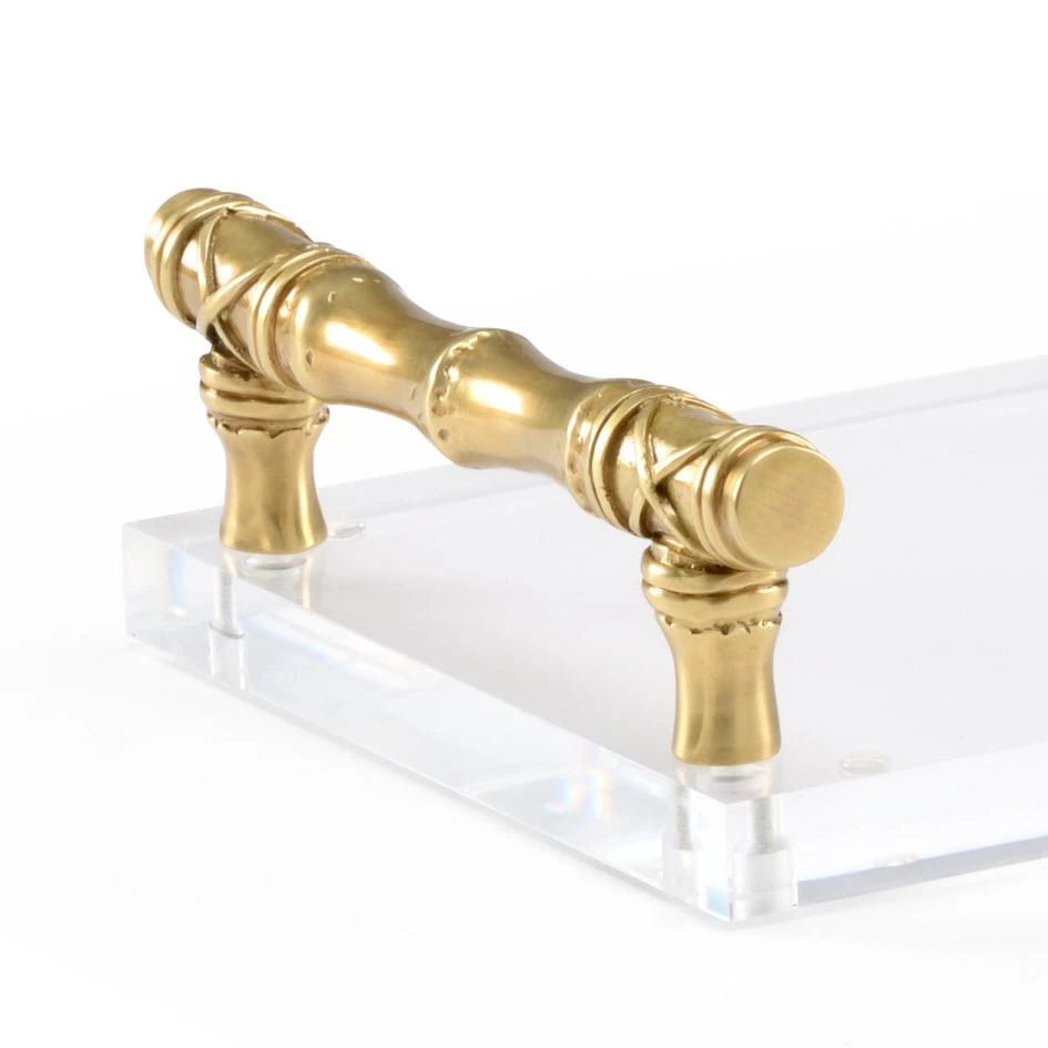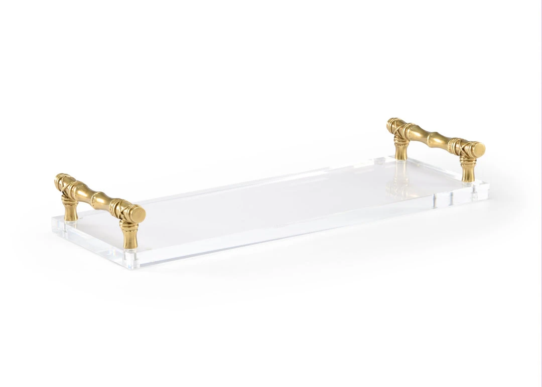 Acrylic Tray With Antique Brass Handles.
