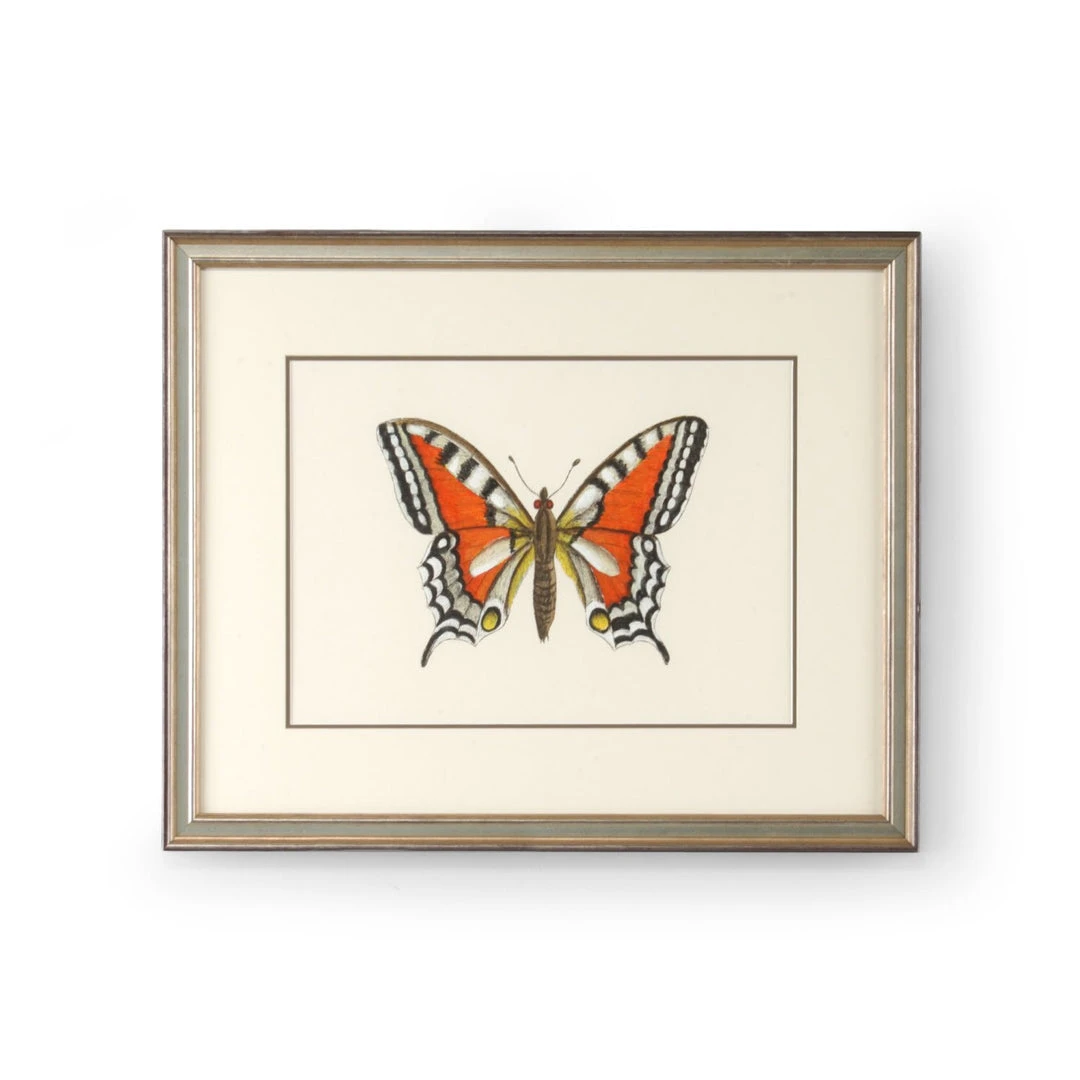 Hand Painted Lithograph,double Mat, Antique Silver Frame Art From La Casa/Smp# Butterfly Orange
