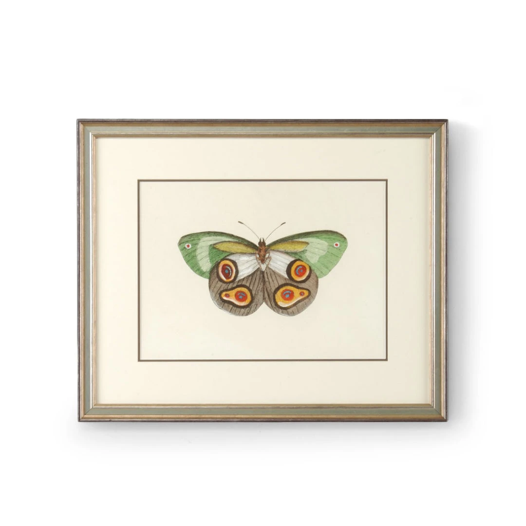 Hand Painted Lithograph,double Mat,antique Silver Frame Art From La Casa/Smp# Butterfly Green