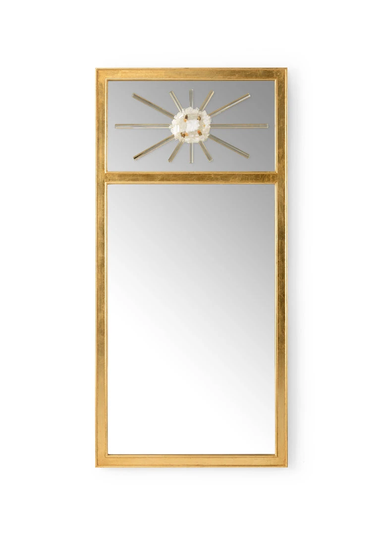 Contemporary Rock Crystal Trumeau With An Antique Gold Wood Frame And A Clear Beveled Mirror.