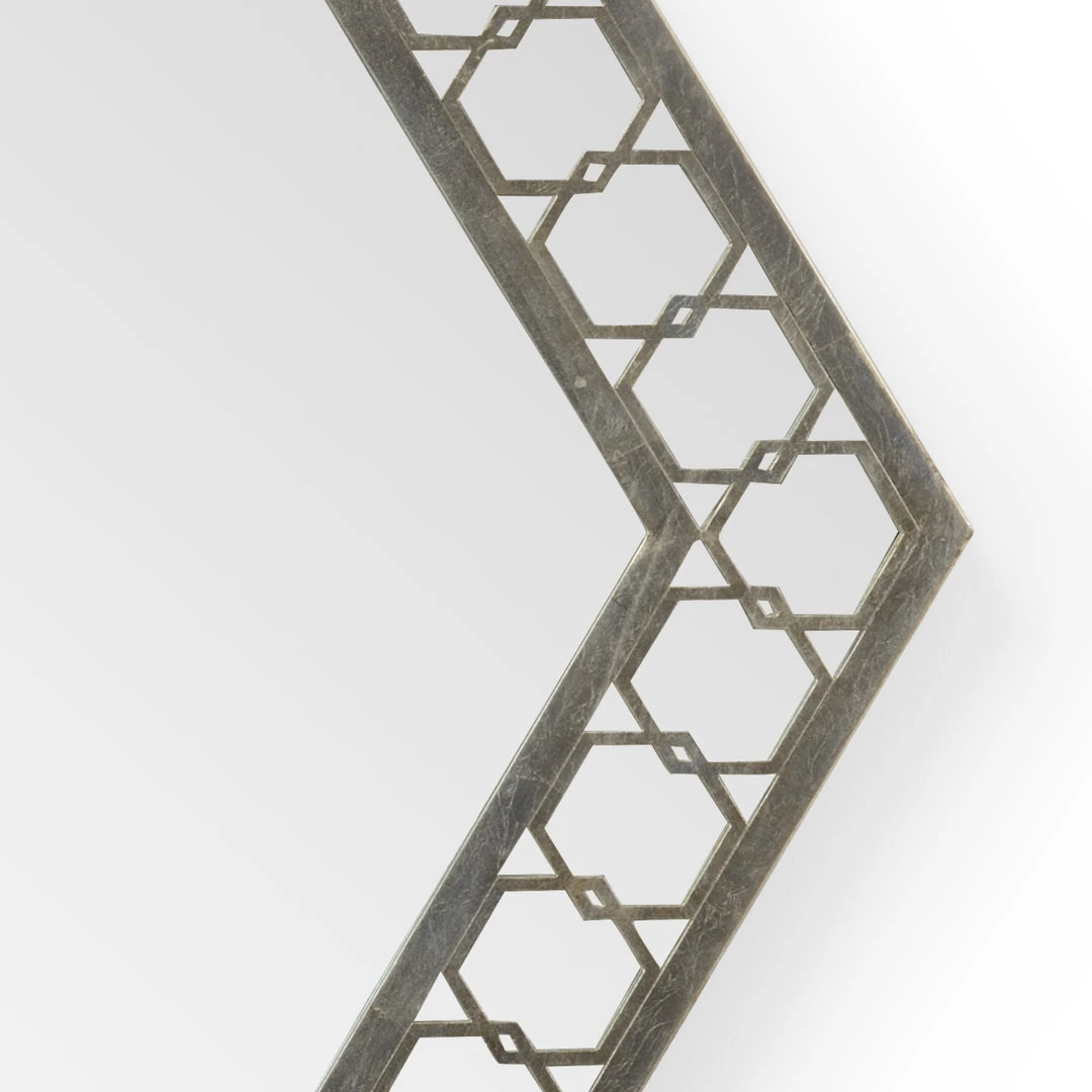 A Hexagonal Shaped Mirror With An Interlocking Geometric Pattern Of A Honeycomb In Satin Silver. Designed By Shayla Copas.
