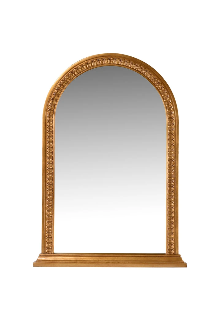 Clear Mirror In Arch Shaped Antique Gold Leafed Fiberglass Frame.