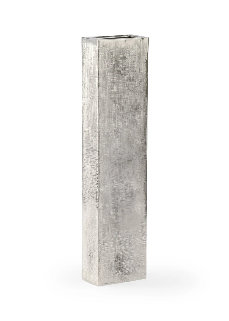 Large Rectangular Metal Vase In Polished Nickel Finish