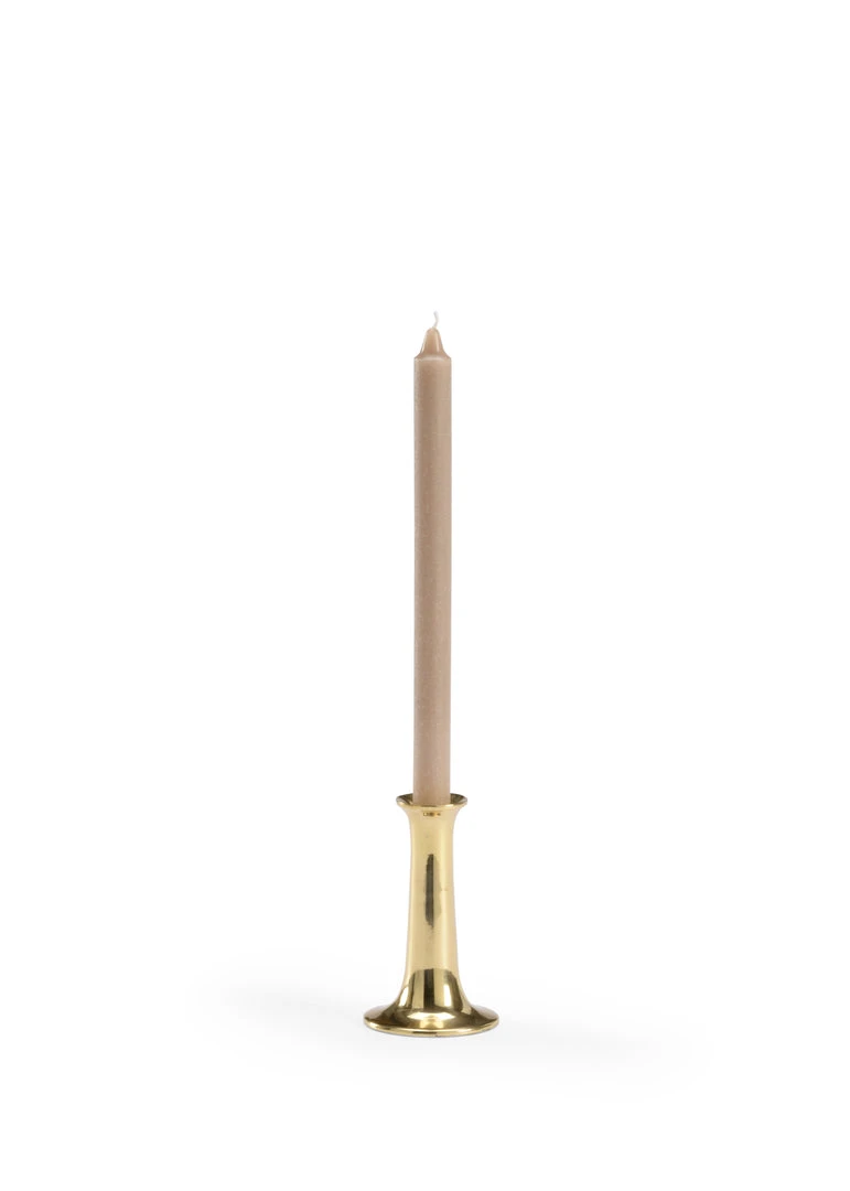 Small Metal Column Candlestick With Round Base In Polished Brass Finish