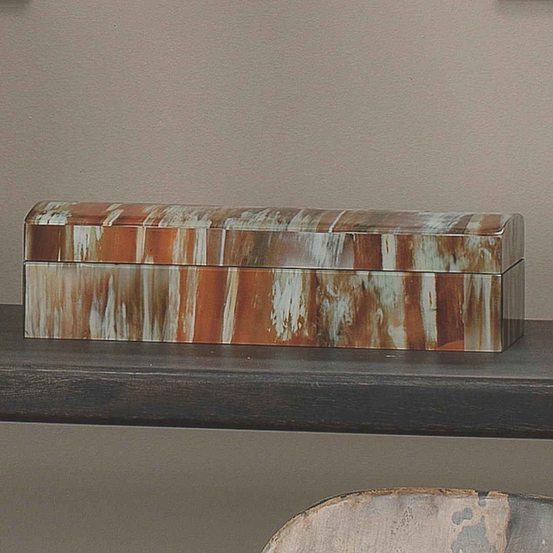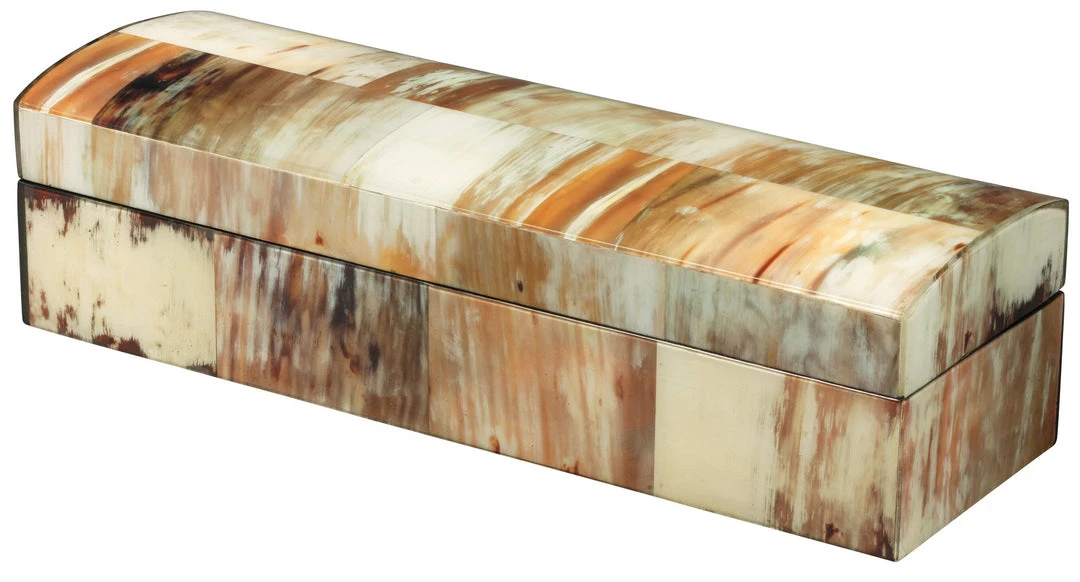 The gorgeous, natural looking finish is a taupe and cream image of buffalo horn without using the horn.