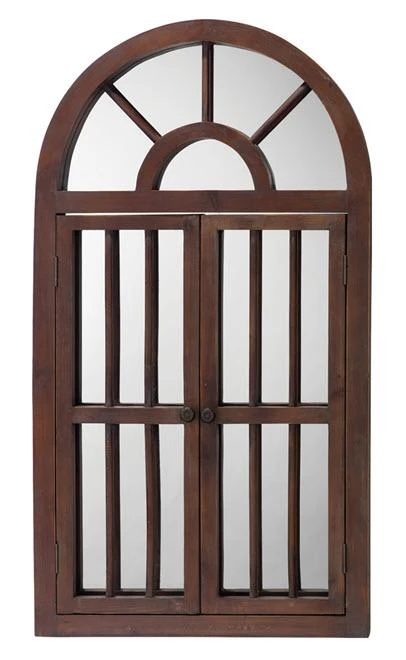 This mirror hangs vertically only. Rustic and strong this mirror is a perfect marriage of old and new world styles. Doors open.