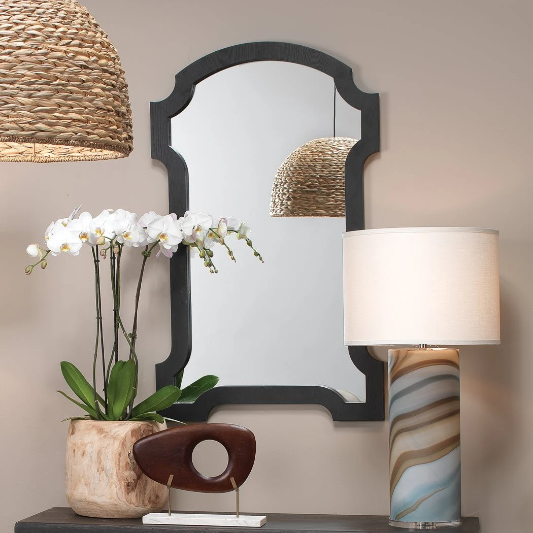 The Estate Mirror is 47″ tall and has an understated finish in Grey Wash or Dark Grey stain on wood. The traditional shape mixed with a natural finish makes this mirror an updated transitional piece.