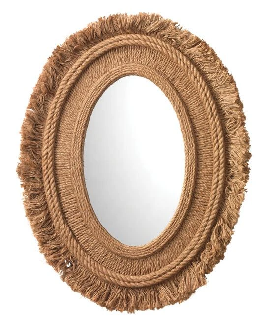 A modern bohemian beauty takes woven jute to new levels in this statement-worthy mirror. Unbraided jute dangles freely from the entire oval perimeter of this Fringe Mirror, giving this wall accent a relaxed but refined vibe.