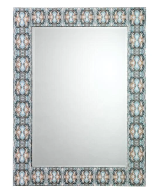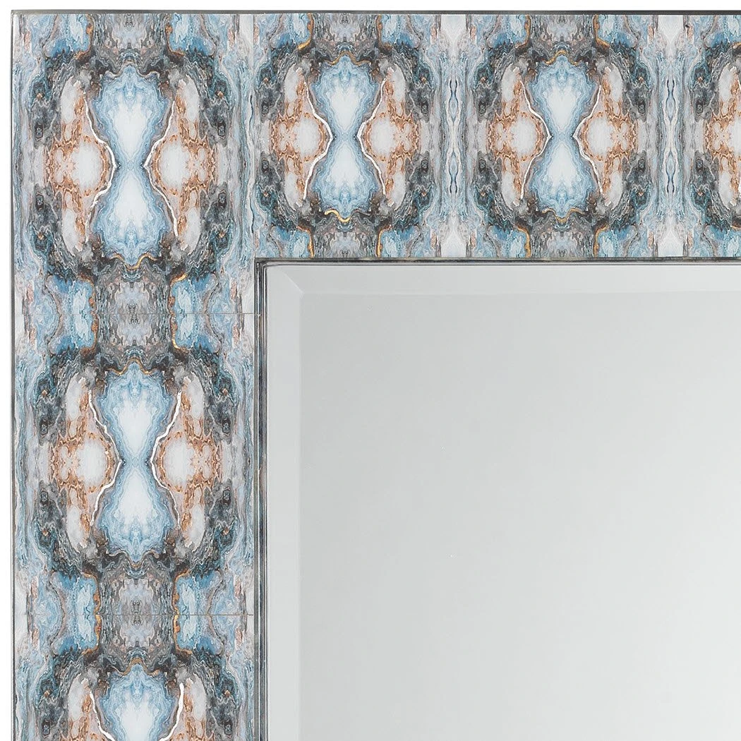 Inspired by Rorschach inkblots tests, known to examine emotion through interpretation, our Rorschach mirror inspires you to look closer into the bold tones of indigo, navy and cream, accented with silver and gold leaf. These components create dynamic patterns through overlaid photos underneath a clear lacquer.