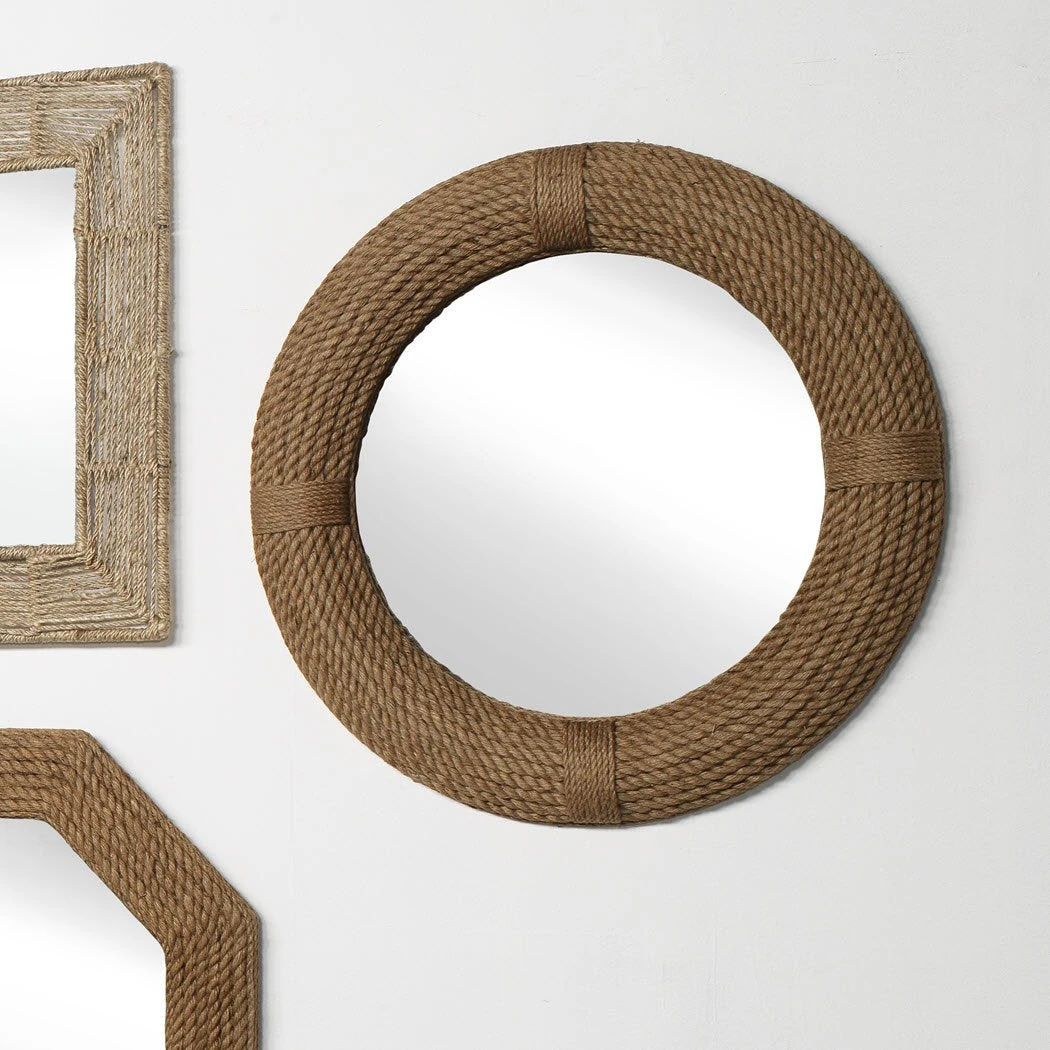 This mirror hangs both vertically and horizontally. Finished with natural rope, this mirror gives a nautical chic feel, perfect for a casual and sophisticated space.