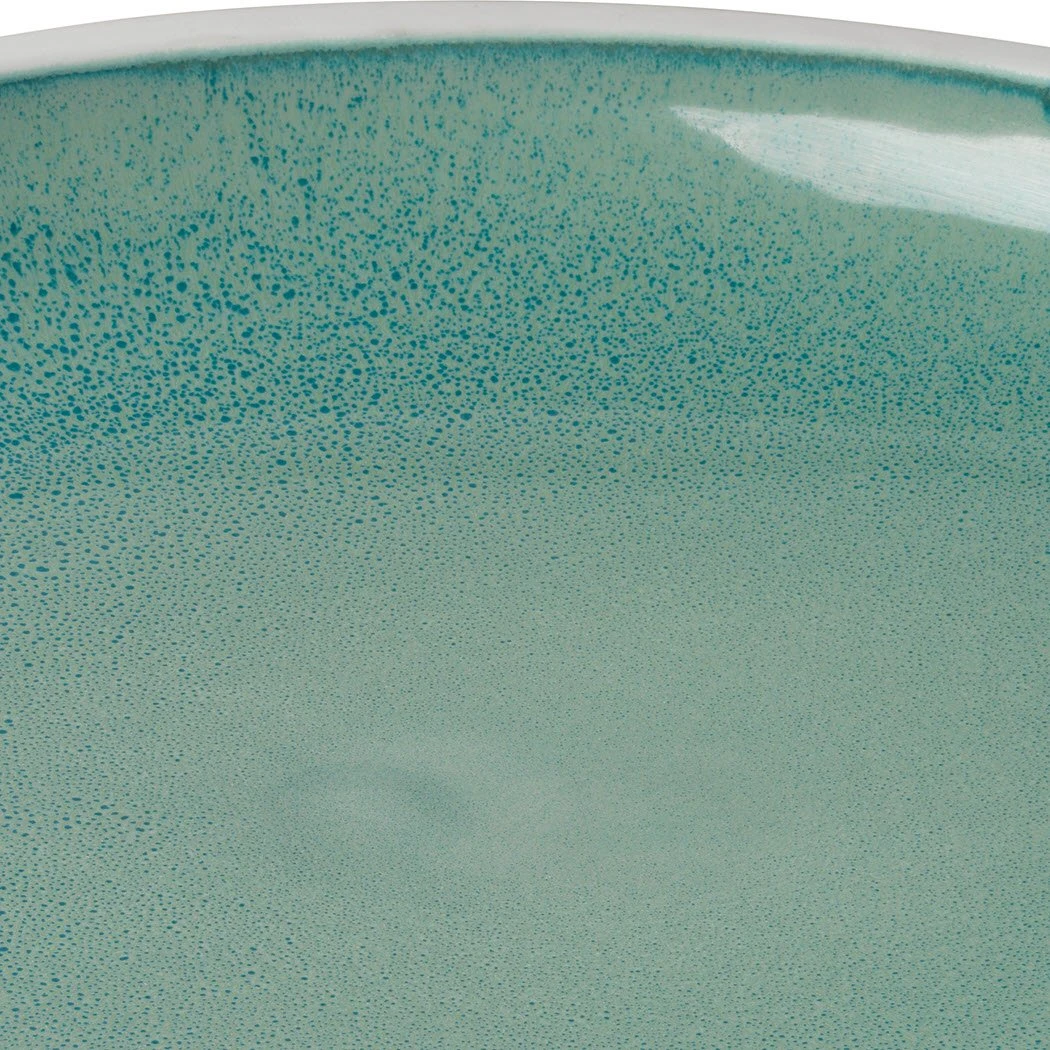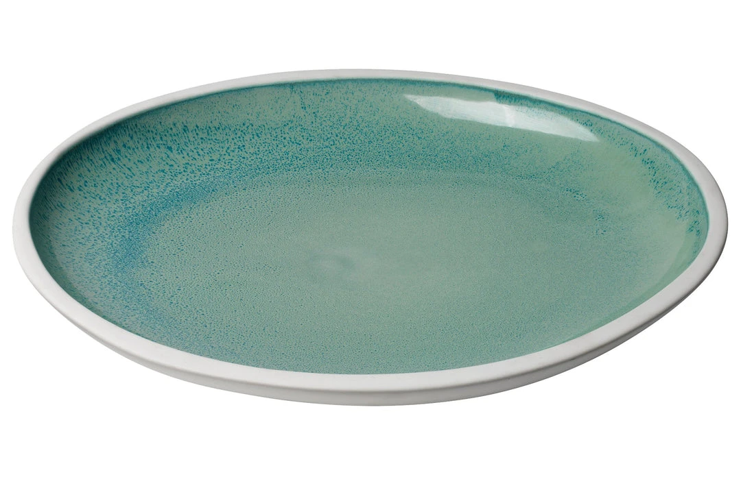 These unique platters and bowls are created using a reactive glaze that create a one of a kind pattern, so no two pieces are the same. They come in a sand or ocean color with a smooth matte white finish on the outside to add a touch of modern to these casual pieces.