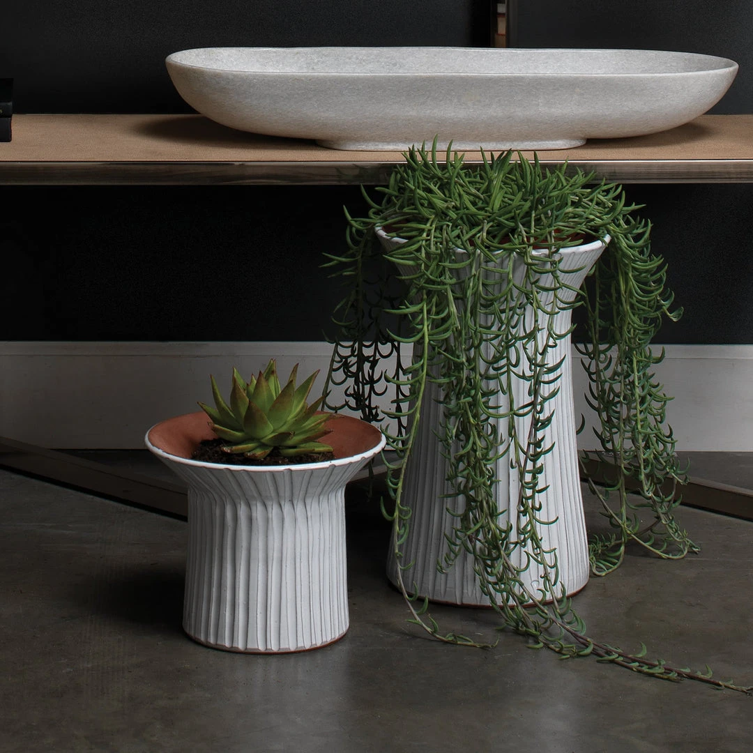 These decorative ceramics with the off white texture on the outside and terra cotta inside create beautiful handmade accents for your home.
