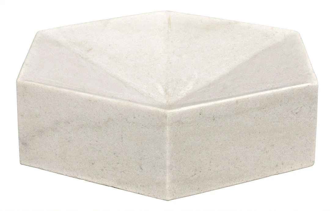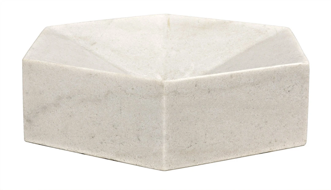 Hand-formed of genuine white marble, these contemporary accent pieces were designed with simple lines to allow the natural material center stage. Each is unique, as no two pieces of natural stone are identical. The collection includes candle accessories, bowls, urns, & more.