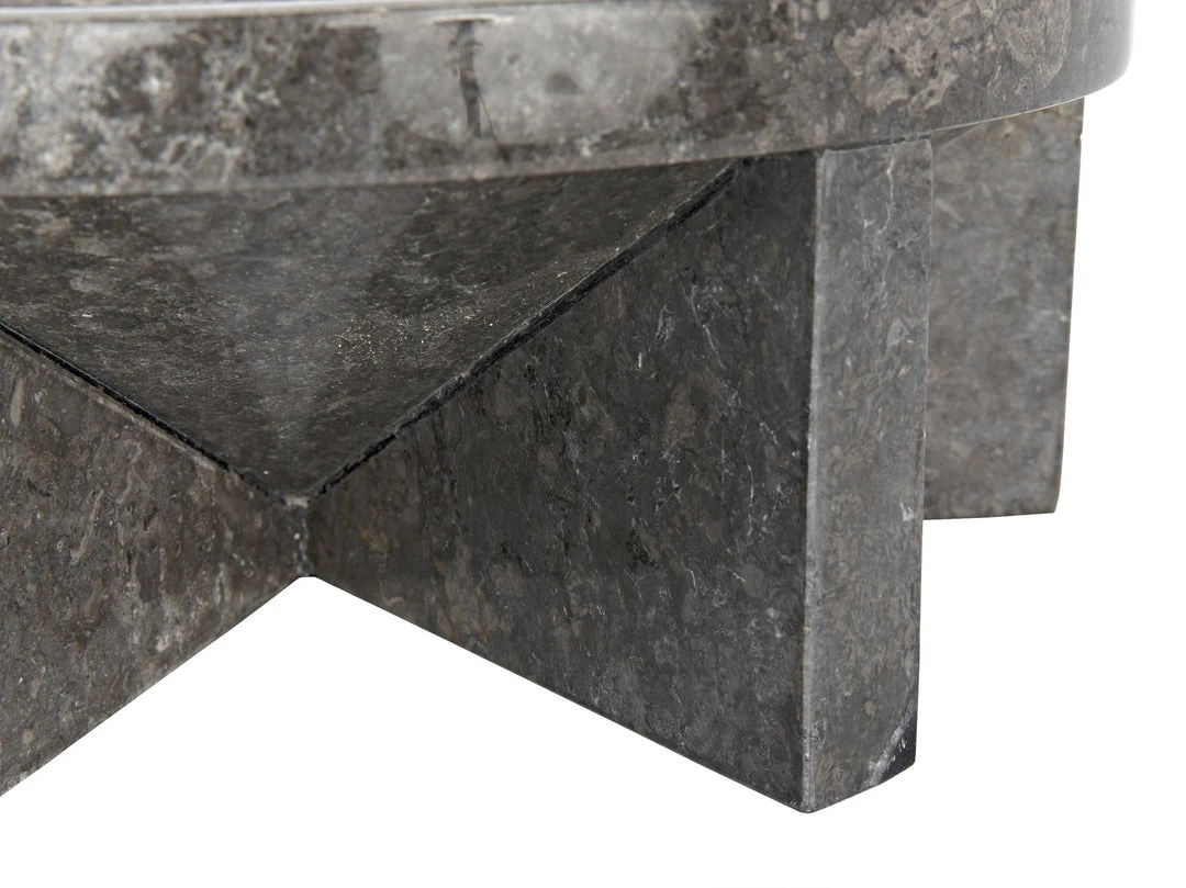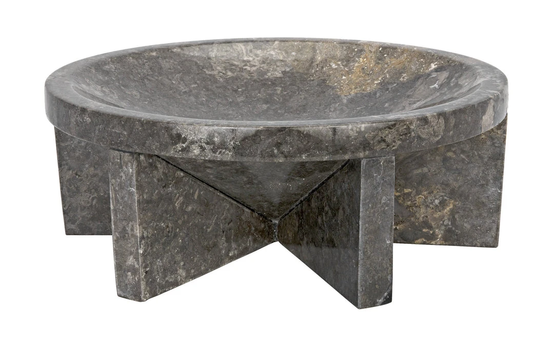 Generously sized at well over a foot in diameter, this dramatic natural black marble tray is the perfect catch-all for any space. Expertly artisan crafted of solid stone and designed with simple lines, the natural material takes center stage. The marble we work with was chosen for the beauty of its natural striations and veining. No two pieces of marble are the same, and each of our marble objects will therefore be unique to themselves.