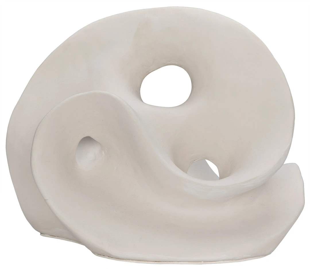 Formed of fiber cement, which has a rich, natural texture that invites exploration, this sculpture, with its curvy contemporary lines and deep natural finish, makes a bold and unexpected addition to a modern decor.