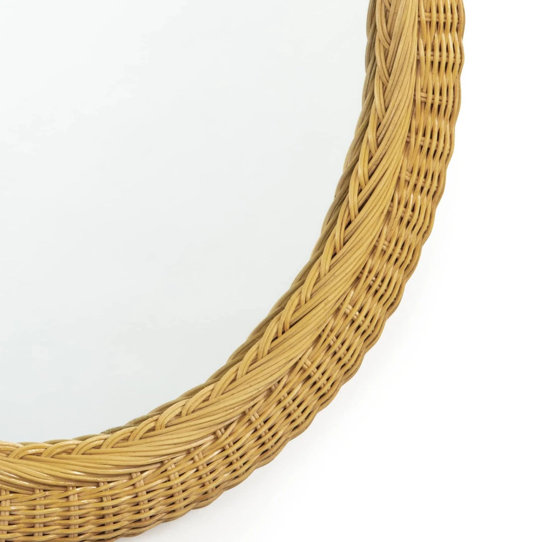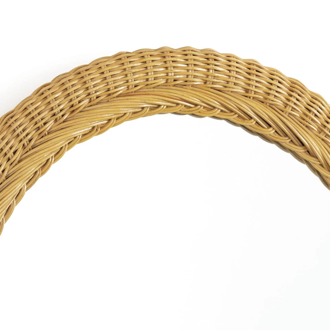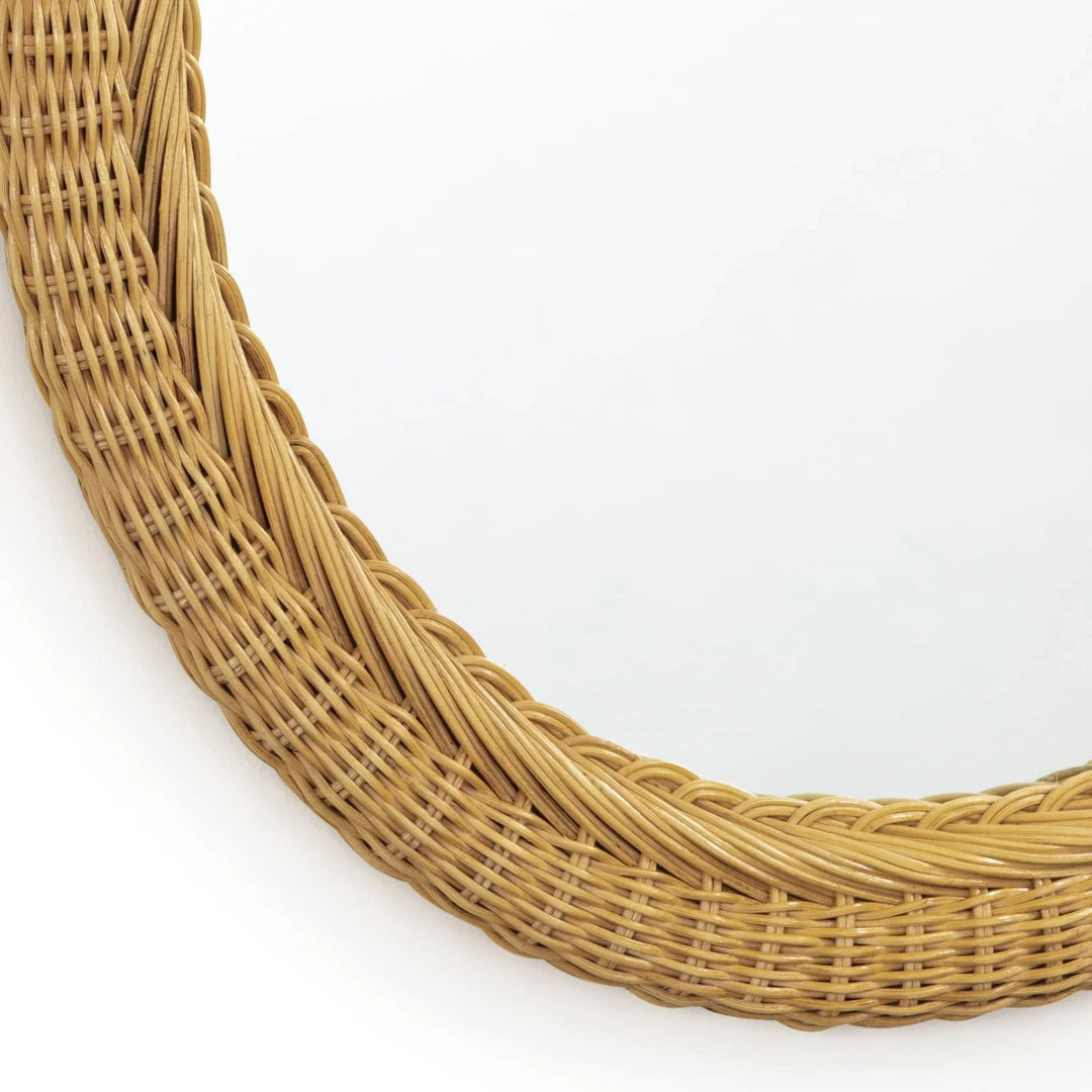 The Bonjour Mirror has a beautiful, oblong basket-weave frame. Its wheat-colored frame has a coastal cottage charm and an organic appeal that would work well in a number of traditional settings. Add this mirror to a bathroom, powder room, in an entryway or bedroom.