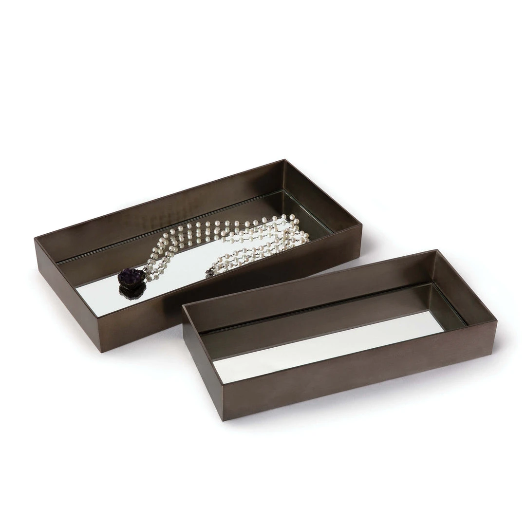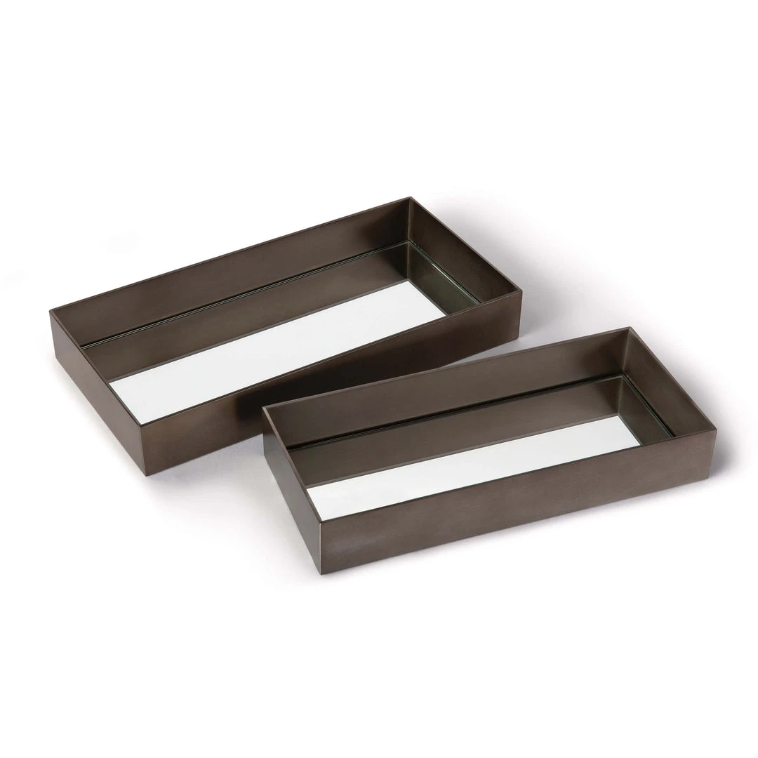 These simple stainless steel nesting trays are a versatile solution for independent display or pairing with other accessories. Add to your living room or bedroom decor today.