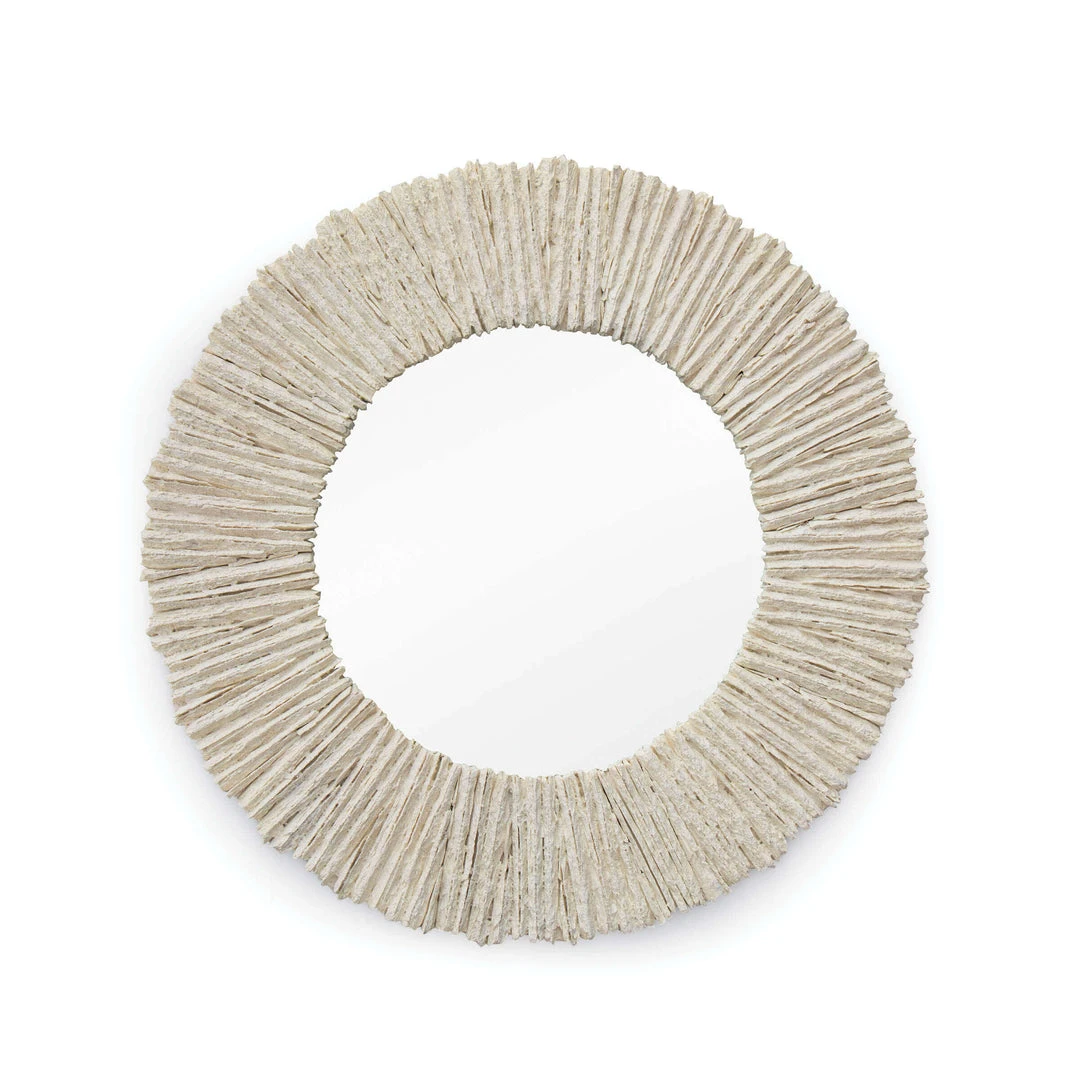 Inspired from natural slate stone, this round mirror brings dimension and texture to any room. Due to the natural variation in the materials used, no two mirrors are alike.