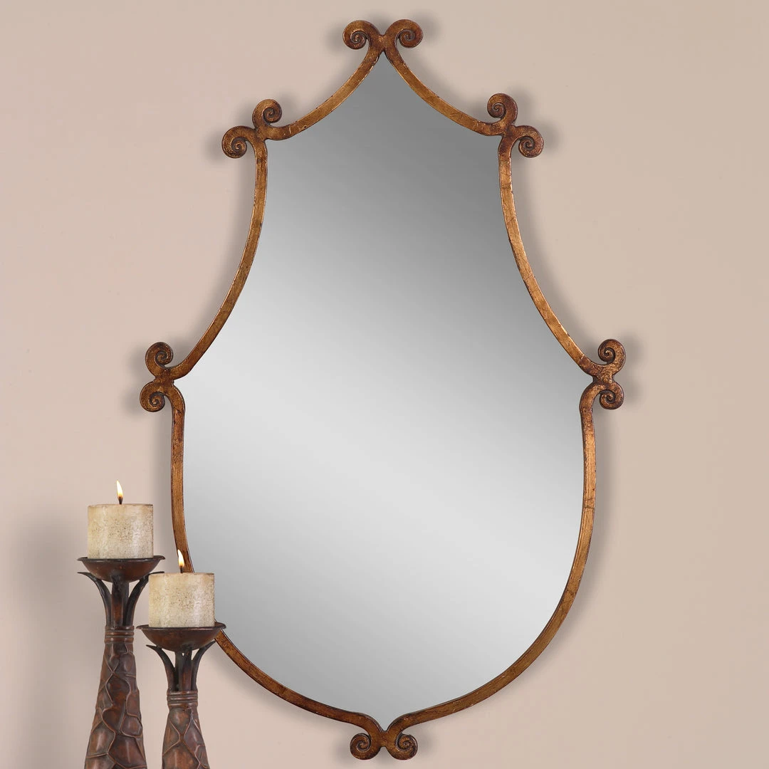 Mirror Features A Hand Forged Metal Frame Finished In Antiqued Gold With Burnished Edges.