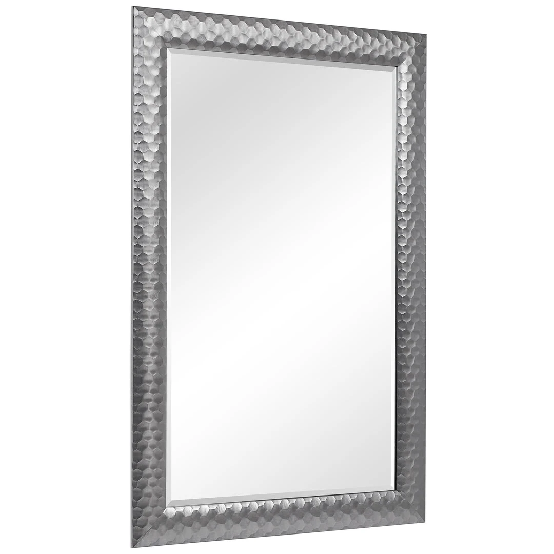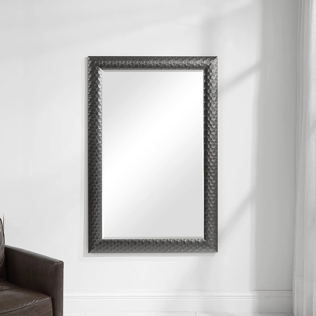 This Rectangular Mirror Has A Contemporary Style With Organic Touches By Featuring A Textured Honeycomb Pattern, Individually Concaved For Dimensional Appeal, Finished In A Gunmetal Gray. The Beveled Mirror May Be Hung Horizontal Or Vertical.