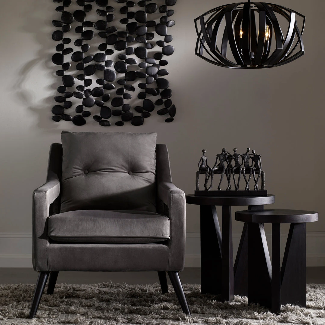 Textured Figurines With An Appearance Of Hand Molding Finished In A Heavily Aged Silver Displayed On A Porous Textured, Aged Black Base.