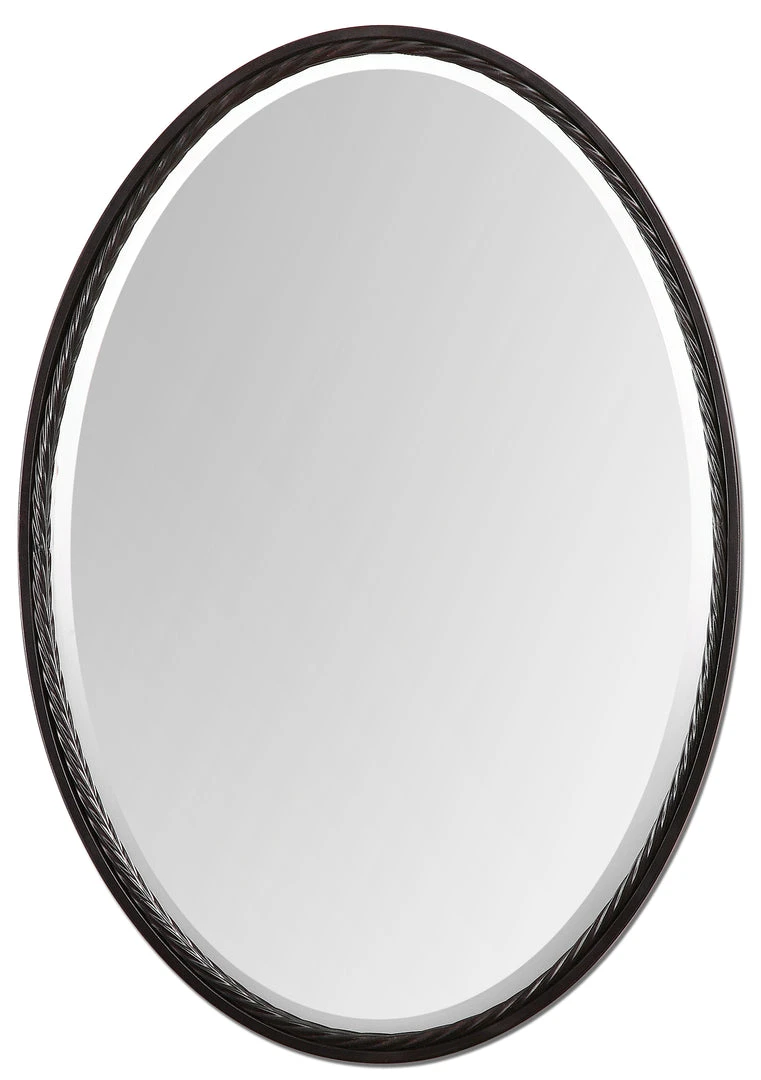 Oil Rubbed Bronze Finish With Twisted Metal Rope Detail. Mirror Is Beveled. May Be Hung Vertical Or Horizontal.