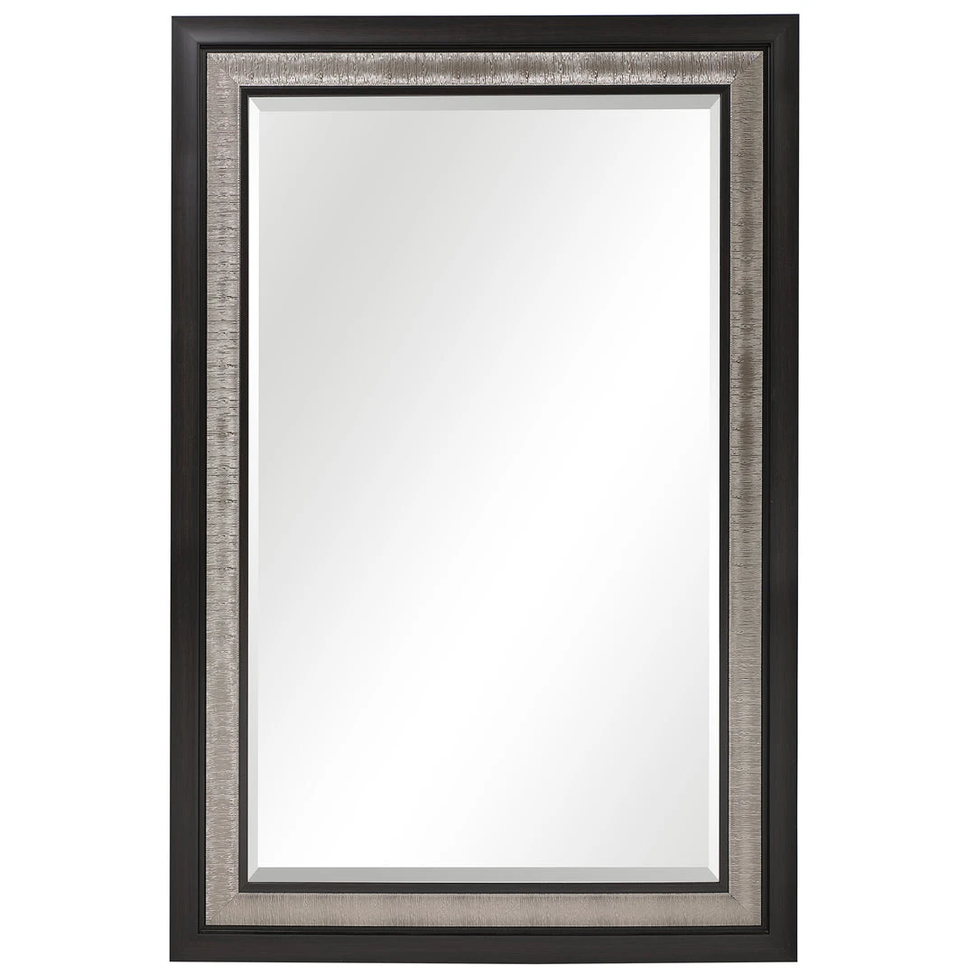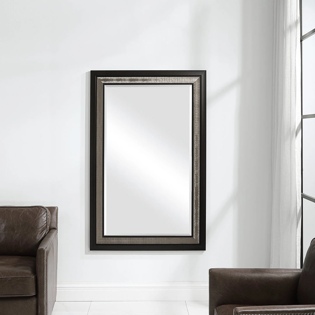 This Oversized Mirror Features A Stepped Profile Finished In A Dark Ebony Wash With Subtle Brown Undertones, Accented With Silver Raised Details That Have An Organic Appeal. The Beveled Mirror May Be Hung Horizontal Or Vertical.