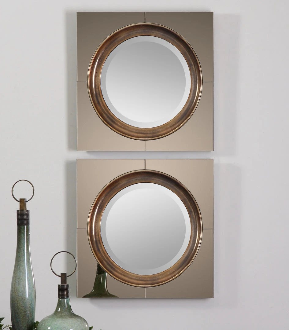Antiqued, Outer Mirrors Surrounding A Center Frame Finished In A Heavily Antiqued Gold. Mirror Is Beveled. Sold Individually. Twelve Are Shown.
