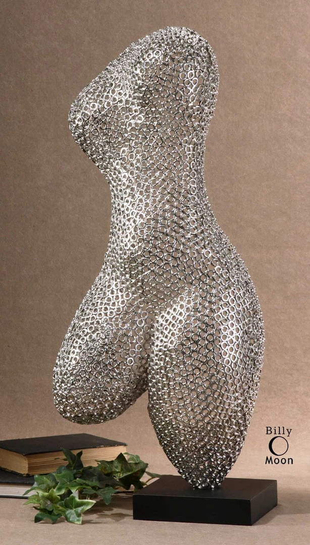 This Sculpture Is Made Of Hand Forged Metal And Has A Nickel Plated Finish. Base Is Matte Black.