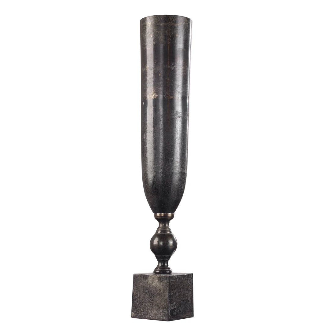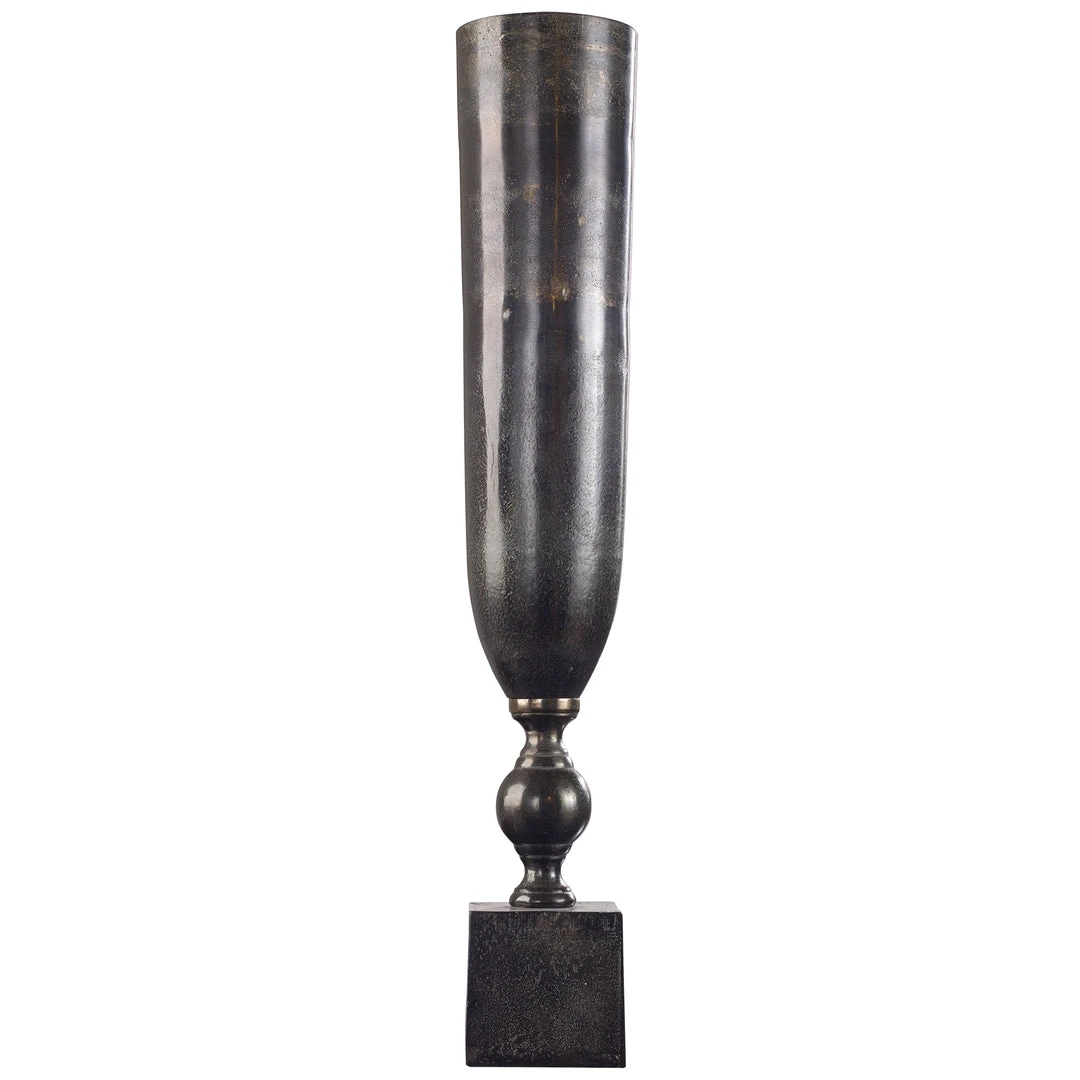 Large-scale Textured Cast Aluminum Vase Featuring A Black Nickel Finish.