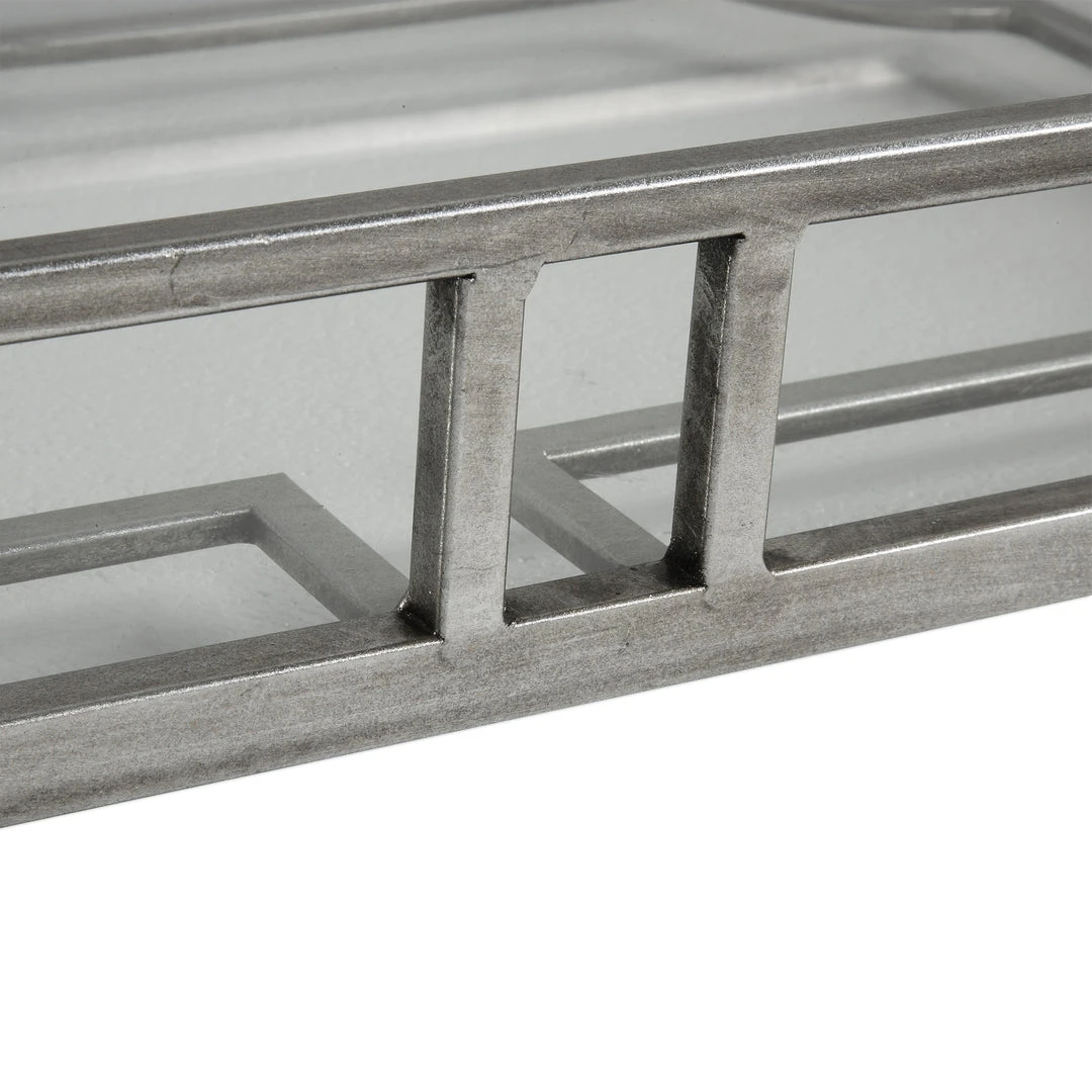 Forged Iron With A Metallic Silver Leaf Finish Accented By A Reinforced Glass Interior.