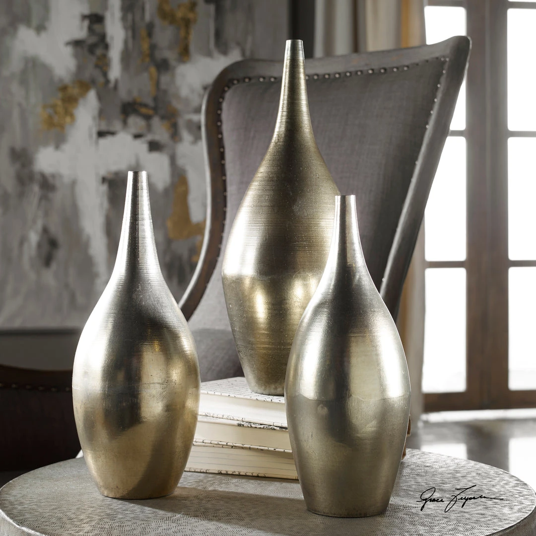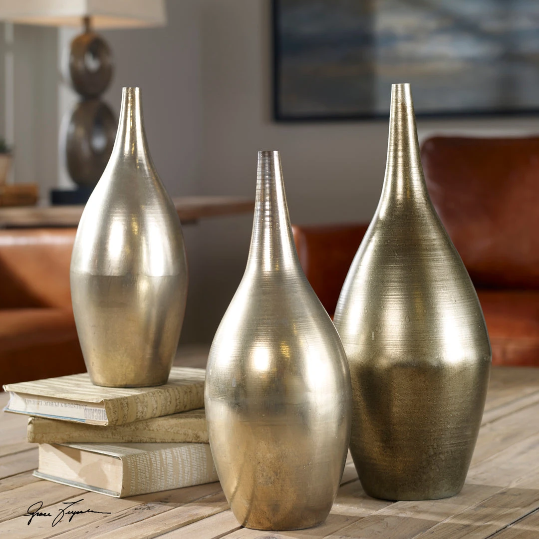 These Vases Are Made Of Shiny, Golden Champagne Electroplated Metal. Not Designed To Hold Liquids. Sizes: S-4x12x4, M-5x13x5, L-6x16x6