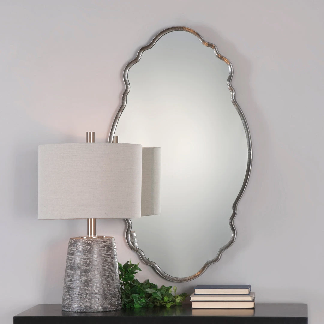 Add A Touch Of Elegant Charm To Your Room With This Versatile Mirror That May Be Hung Either Horizontal Or Vertical. The Hand Hammered, Iron Frame Has A Metallic Silver Finish With A Lightly Applied Burnished Wash.