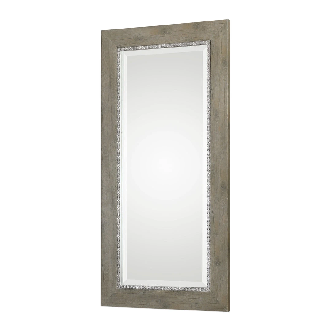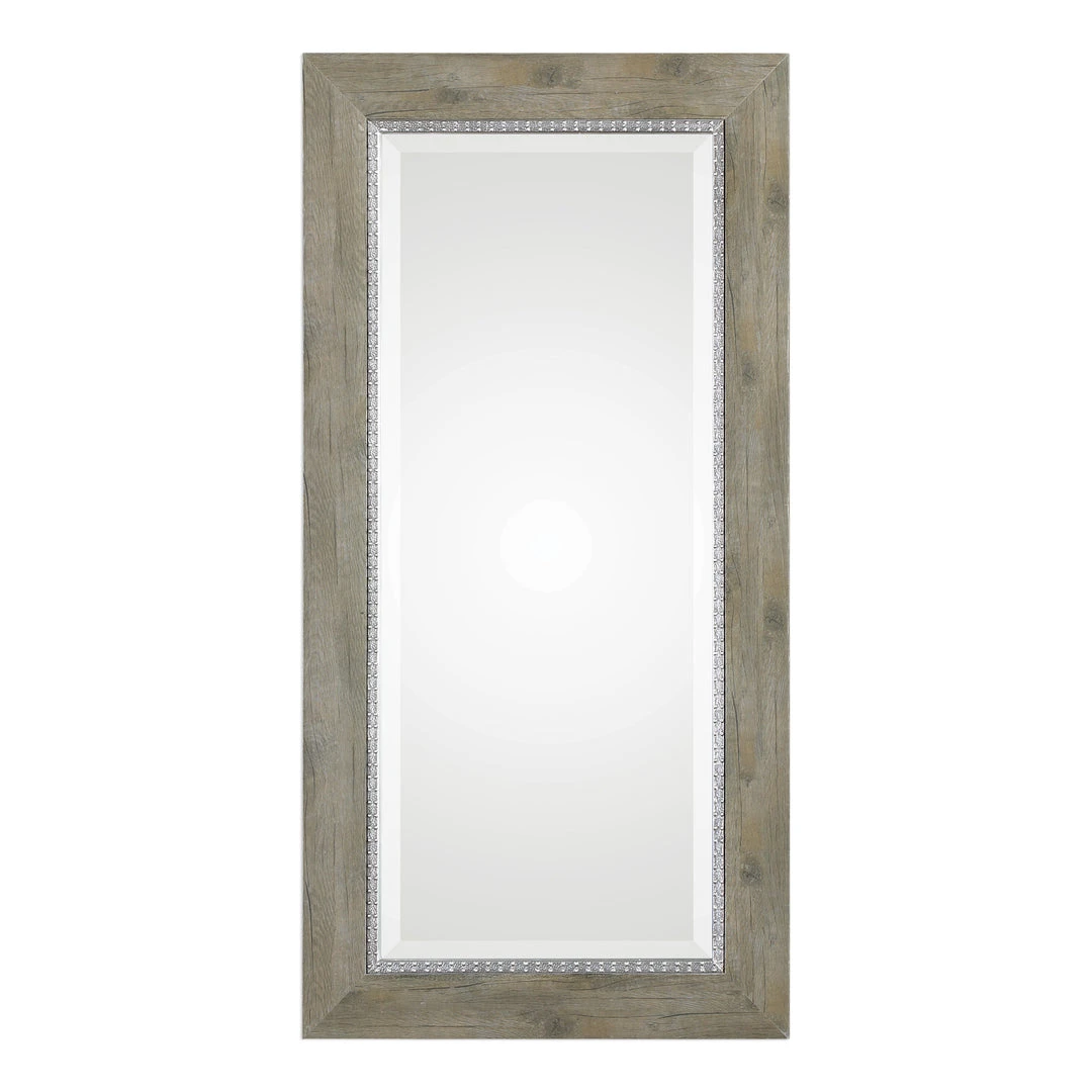 This Rustic Solid Wood Frame Is Accented With A Beaded Aged Silver Inner Liner. Mirror Features A Generous 1 ” Bevel. May Be Hung Horizontal Or Vertical.