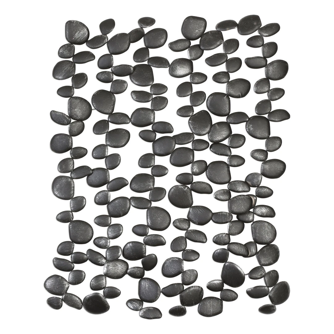 Reminiscent Of Smooth Stone Pebbles In Rippling Water, This Wavy 3-dimensional Piece Is Crafted From Hand Forged Iron And Finished In A Charcoal Black With Silver Undertones.