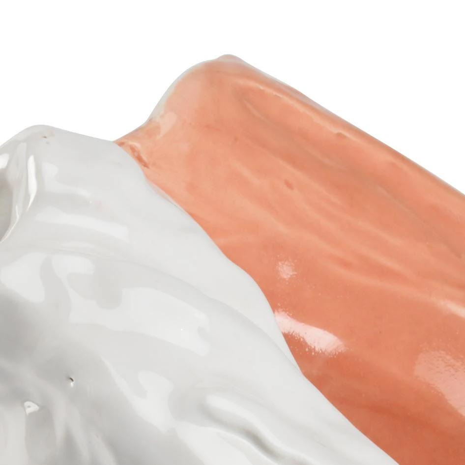 Decorative White Italian Ceramic Shell With A Coral Glazed Inside.