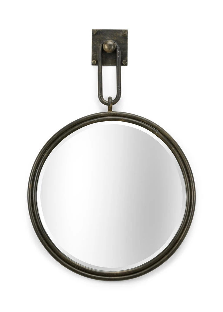 Bronze finish on iron frame with round mirror.