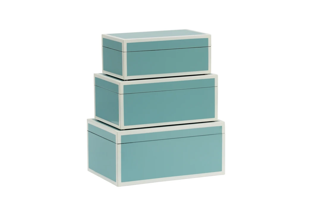 Set Of 3 Nested Wood Composite Boxes With Lids. High Gloss Lacquer Finish. Medium: 10.75 X 6.75 X 5″H, Small: 9.75 X 5.75 X 4″H