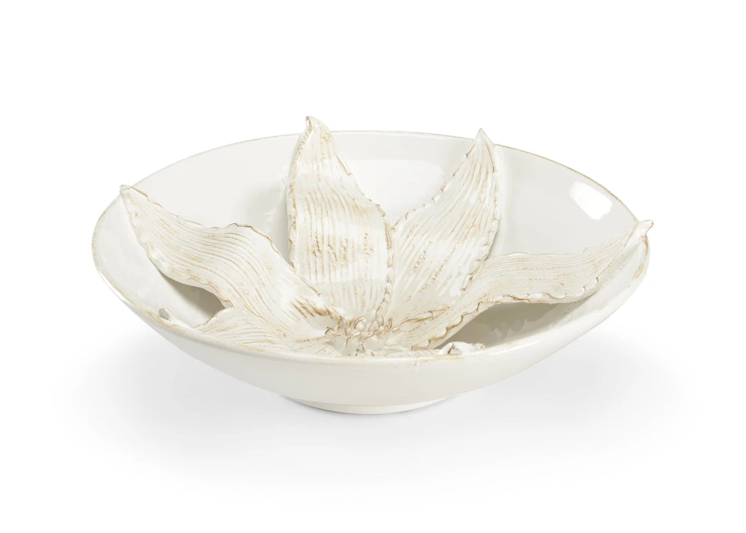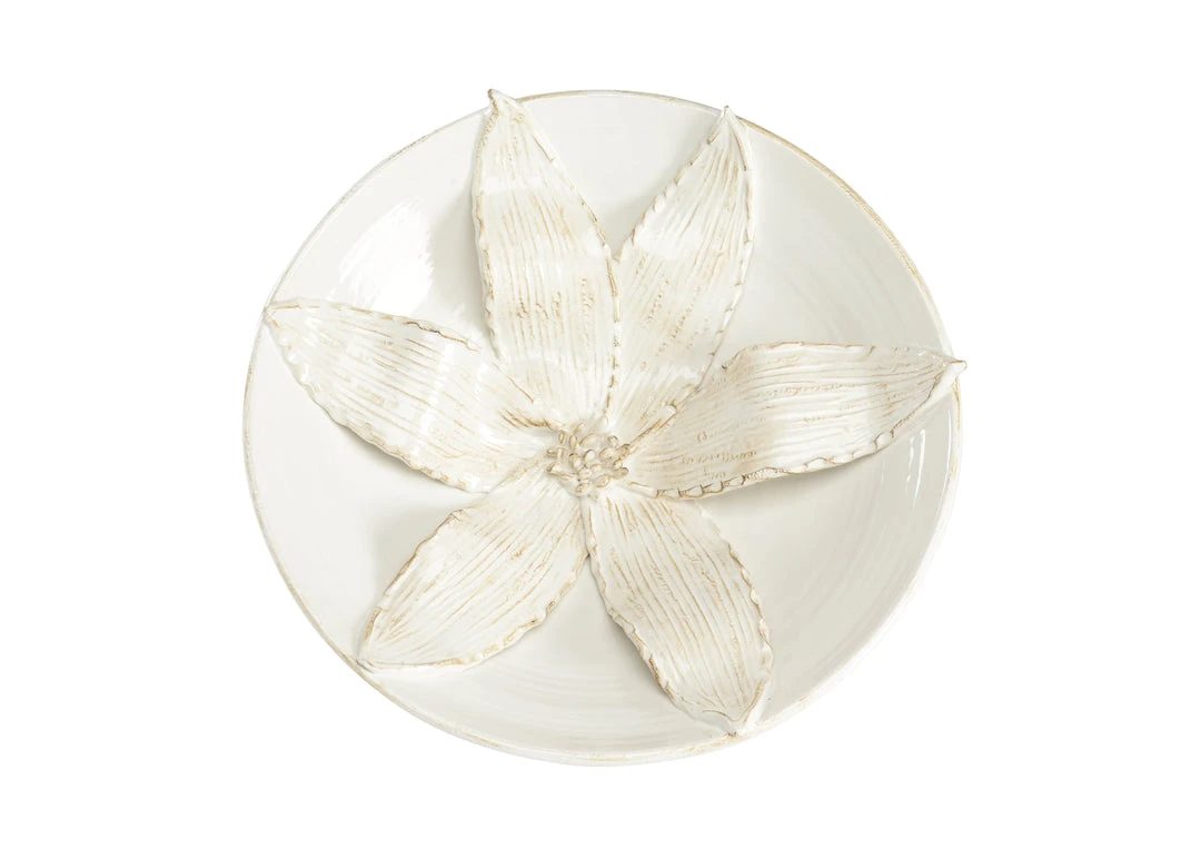 Aged White Lily Italian Ceramic Centerpiece