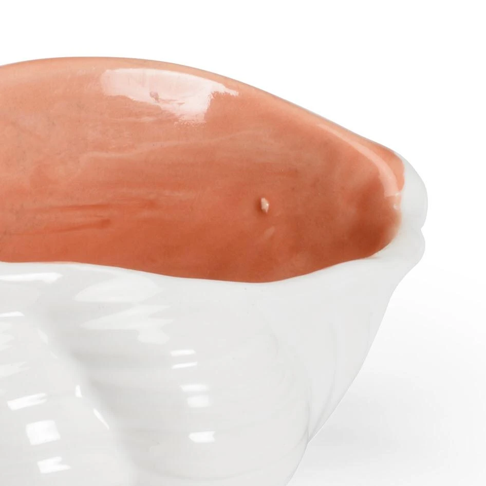 Small Decorative White Italian Ceramic Shell Bowl With A Coral Glazed Inside.