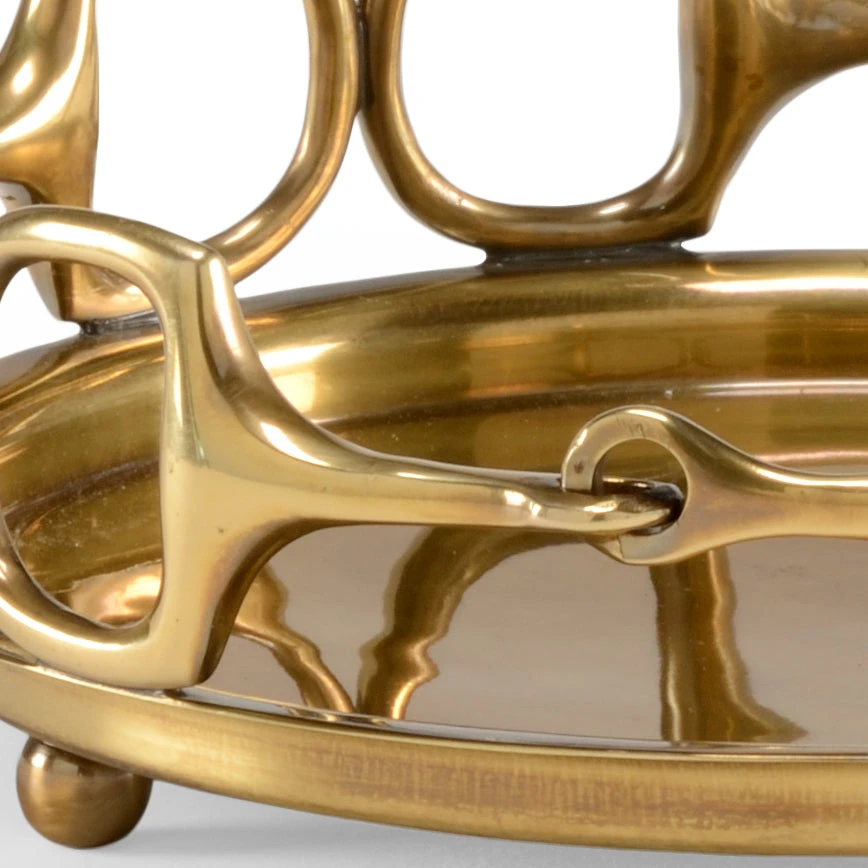 Featuring A Round Serving Tray With D Ring Snaffle Bits, Stirrup Tray Is An Ideal Gift For The Horse Lover That Also Has A Passion For Entertaining. Crafted Of Cast Brass With An Antique Brass Patina, This 9.5″ Diameter Tray Can Also Be Used As A Decorative Accent In Your Home.