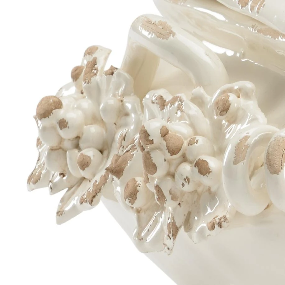 Distressed Cream Italian Ceramic Tureen With Sculpted Grapes Decoration