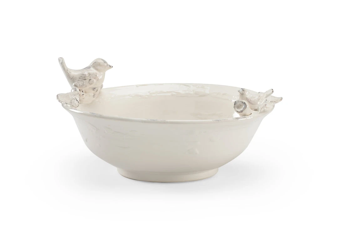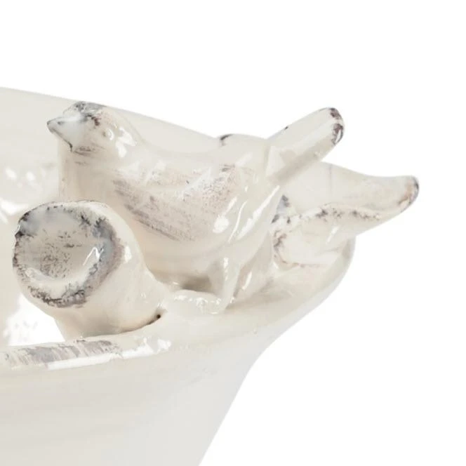 Aged White Italian Ceramic Centerpiece With Sculpted Bird Decoration