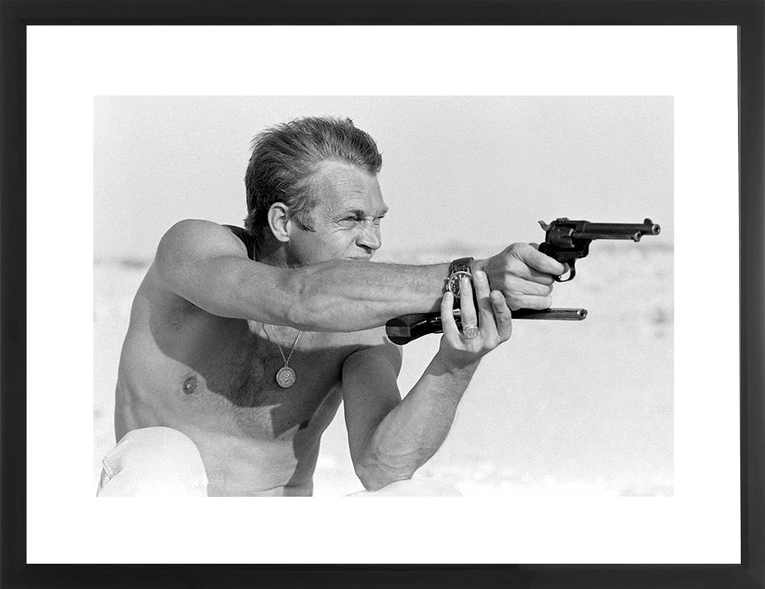 Steve McQueen, pistols (32 x 24) – black lacquer frame.